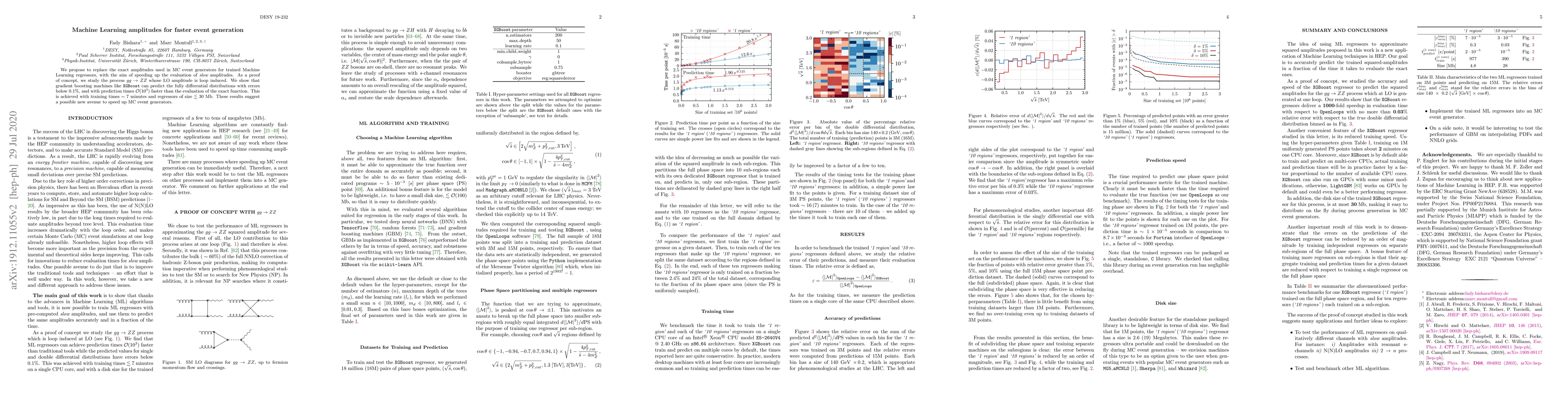 This paper proposes using machine learning regressors to predict amplitudes in Monte Carlo event generators, significantly speeding up evaluations. Gradient boosting machines achieve less than 0.1% error in predicting differential distributions for the $gg \to ZZ$ process, with predictions thousands of times faster than exact calculations.