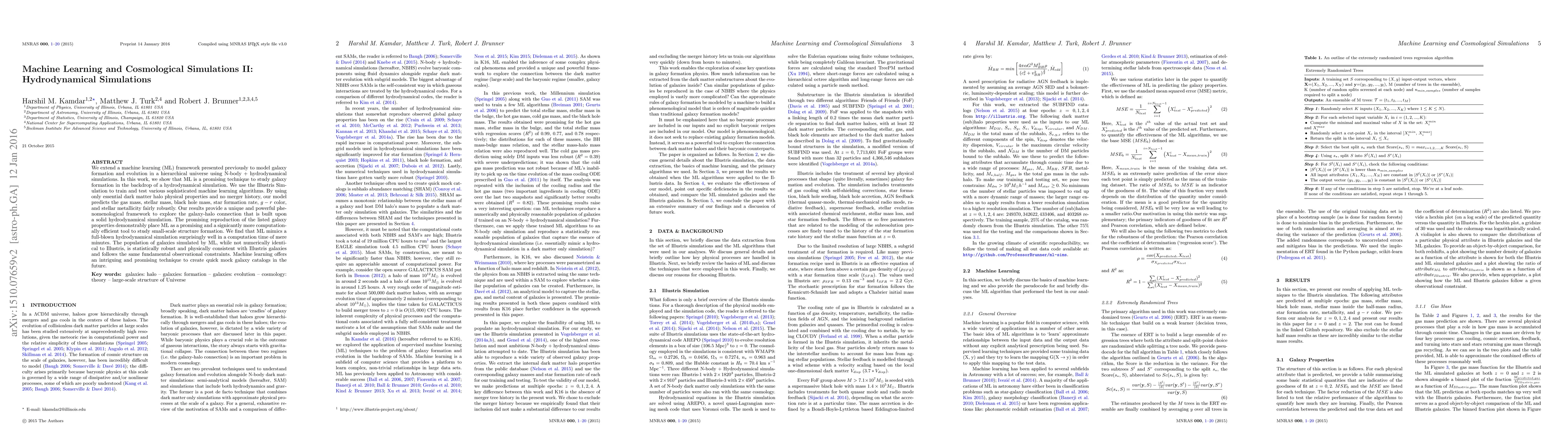We extend a machine learning (ML) framework presented previously to model galaxy formation and evolution in a hierarchical universe using N-body + hydrodynamical simulations. In this work, we show that ML is a promising technique to study galaxy formation in the backdrop of a hydrodynamical simulation. We use the Illustris Simulation to train and test various sophisticated machine learning algorithms. By using only essential dark matter halo physical properties and no merger history, our model predicts the gas mass, stellar mass, black hole mass, star formation rate, $g-r$ color, and stellar metallicity fairly robustly. Our results provide a unique and powerful phenomenological framework to explore the galaxy-halo connection that is built upon a solid hydrodynamical simulation. The promising reproduction of the listed galaxy properties demonstrably place ML as a promising and a significantly more computationally efficient tool to study small-scale structure formation. We find that ML mimics a full-blown hydrodynamical simulation surprisingly well in a computation time of mere minutes. The population of galaxies simulated by ML, while not numerically identical to Illustris, is statistically and physically robust and follows the same fundamental observational constraints. Machine learning offers an intriguing and promising technique to create quick mock galaxy catalogs in the future.
