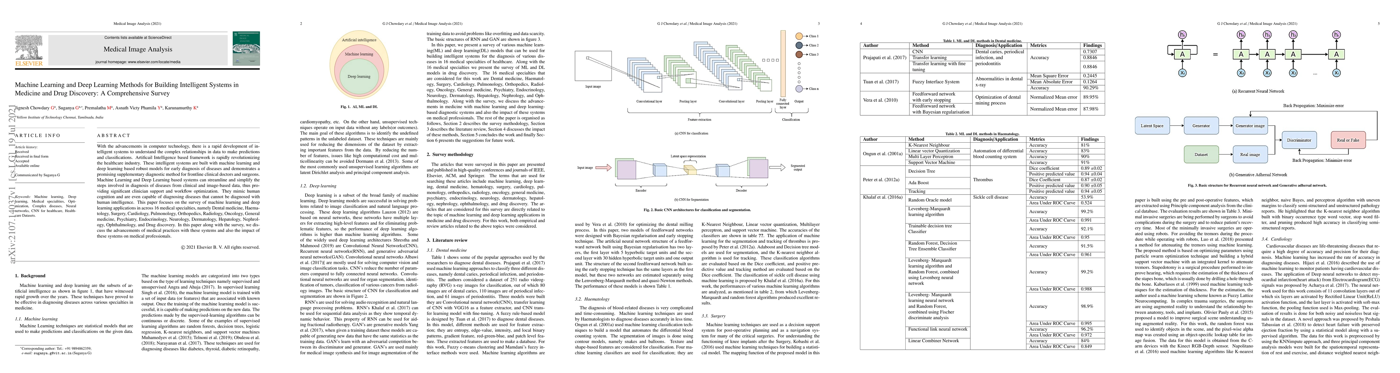 With the advancements in computer technology, there is a rapid development of intelligent systems to understand the complex relationships in data to make predictions and classifications. Artificail Intelligence based framework is rapidly revolutionizing the healthcare industry. These intelligent systems are built with machine learning and deep learning based robust models for early diagnosis of diseases and demonstrates a promising supplementary diagnostic method for frontline clinical doctors and surgeons. Machine Learning and Deep Learning based systems can streamline and simplify the steps involved in diagnosis of diseases from clinical and image-based data, thus providing significant clinician support and workflow optimization. They mimic human cognition and are even capable of diagnosing diseases that cannot be diagnosed with human intelligence. This paper focuses on the survey of machine learning and deep learning applications in across 16 medical specialties, namely Dental medicine, Haematology, Surgery, Cardiology, Pulmonology, Orthopedics, Radiology, Oncology, General medicine, Psychiatry, Endocrinology, Neurology, Dermatology, Hepatology, Nephrology, Ophthalmology, and Drug discovery. In this paper along with the survey, we discuss the advancements of medical practices with these systems and also the impact of these systems on medical professionals.