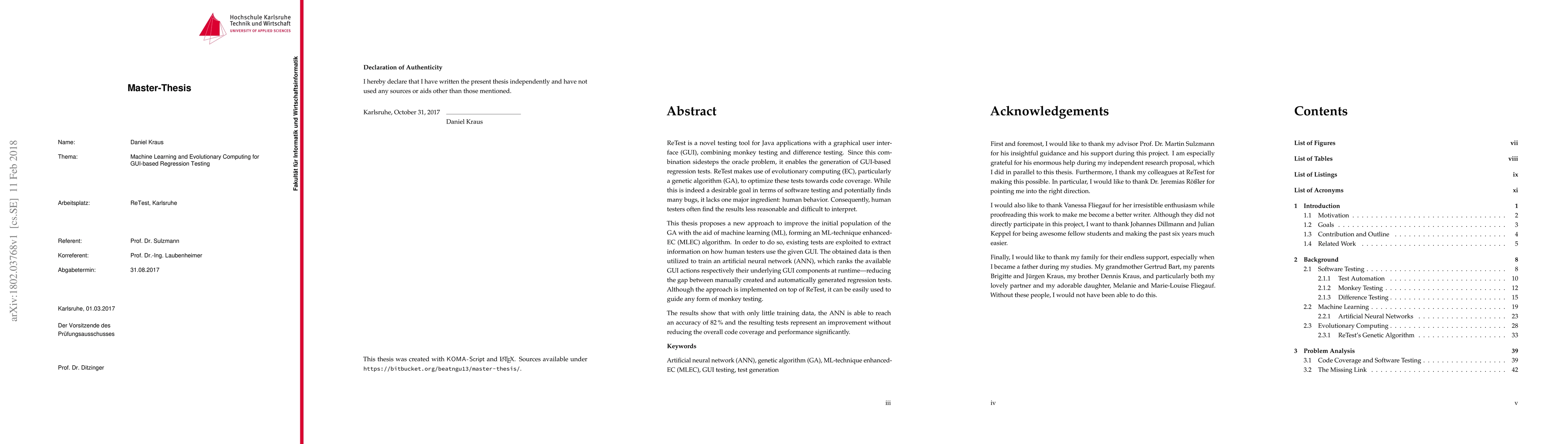 ReTest is a novel testing tool for Java applications with a graphical user interface (GUI), combining monkey testing and difference testing. Since this combination sidesteps the oracle problem, it enables the generation of GUI-based regression tests. ReTest makes use of evolutionary computing (EC), particularly a genetic algorithm (GA), to optimize these tests towards code coverage. While this is indeed a desirable goal in terms of software testing and potentially finds many bugs, it lacks one major ingredient: human behavior. Consequently, human testers often find the results less reasonable and difficult to interpret. This thesis proposes a new approach to improve the initial population of the GA with the aid of machine learning (ML), forming an ML-technique enhanced-EC (MLEC) algorithm. In order to do so, existing tests are exploited to extract information on how human testers use the given GUI. The obtained data is then utilized to train an artificial neural network (ANN), which ranks the available GUI actions respectively their underlying GUI components at runtime---reducing the gap between manually created and automatically generated regression tests. Although the approach is implemented on top of ReTest, it can be easily used to guide any form of monkey testing. The results show that with only little training data, the ANN is able to reach an accuracy of 82% and the resulting tests represent an improvement without reducing the overall code coverage and performance significantly.