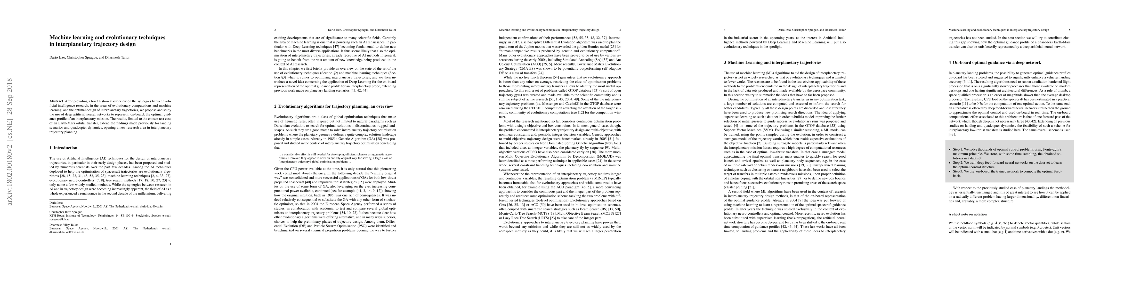 This paper explores the integration of machine learning and evolutionary techniques to design optimal interplanetary trajectories, specifically employing deep neural networks for the Earth-Mars orbital transfer. The study extends previous findings in landing scenarios and quadcopter dynamics, initiating a new research avenue in interplanetary trajectory planning.