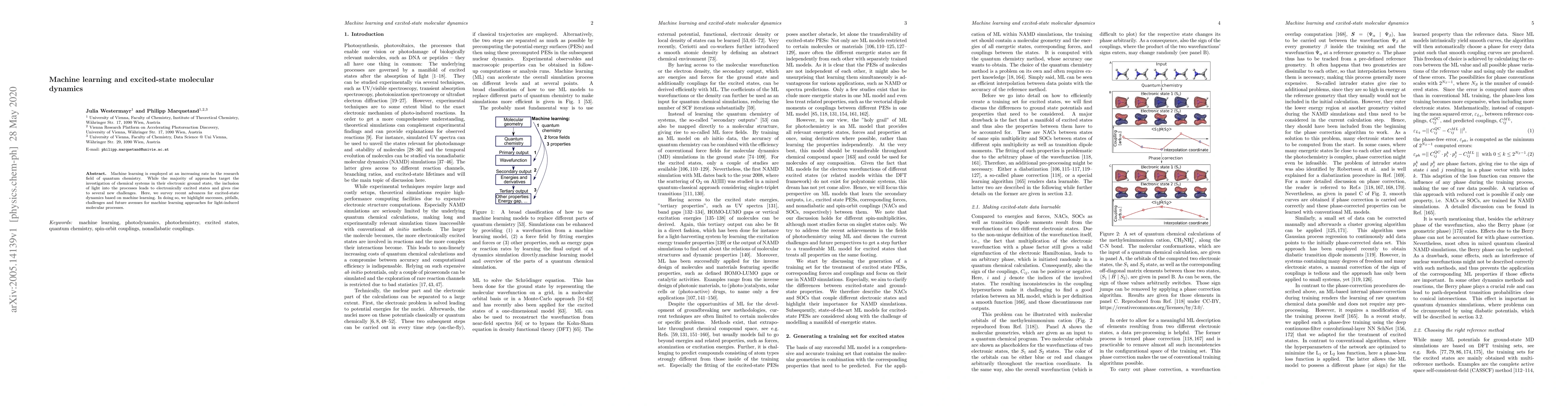 This paper surveys recent advances in using machine learning to study excited-state molecular dynamics in quantum chemistry, highlighting successes, challenges, and future directions for light-induced molecular processes. It emphasizes the unique difficulties and opportunities presented by incorporating light into these investigations.