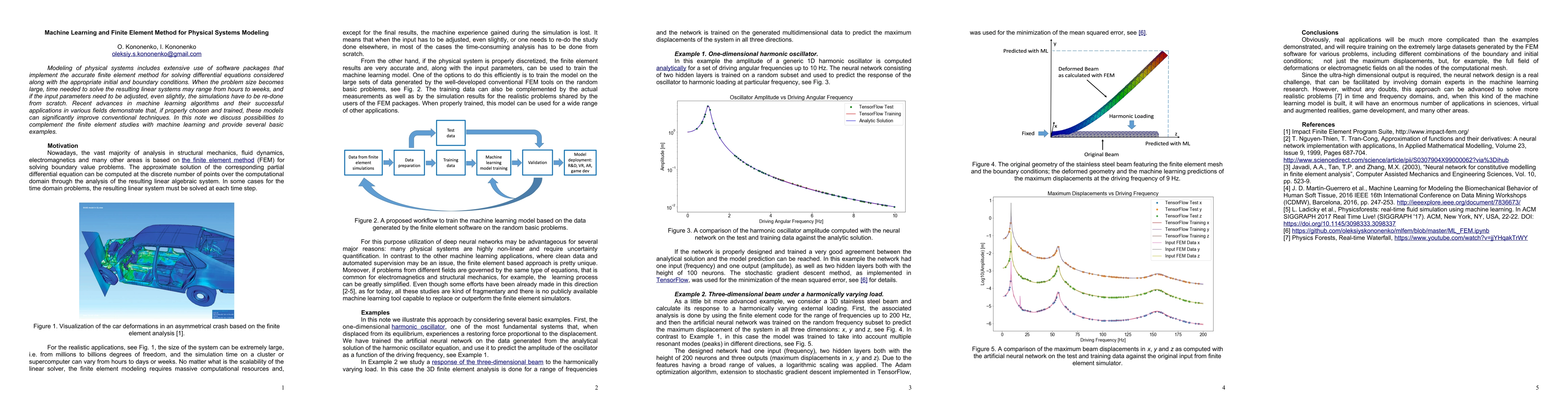 Modeling of physical systems includes extensive use of software packages that implement the accurate finite element method for solving differential equations considered along with the appropriate initial and boundary conditions. When the problem size becomes large, time needed to solve the resulting linear systems may range from hours to weeks, and if the input parameters need to be adjusted, even slightly, the simulations has to be re-done from scratch. Recent advances in machine learning algorithms and their successful applications in various fields demonstrate that, if properly chosen and trained, these models can significantly improve conventional techniques. In this note we discuss possibilities to complement the finite element studies with machine learning and provide several basic examples.