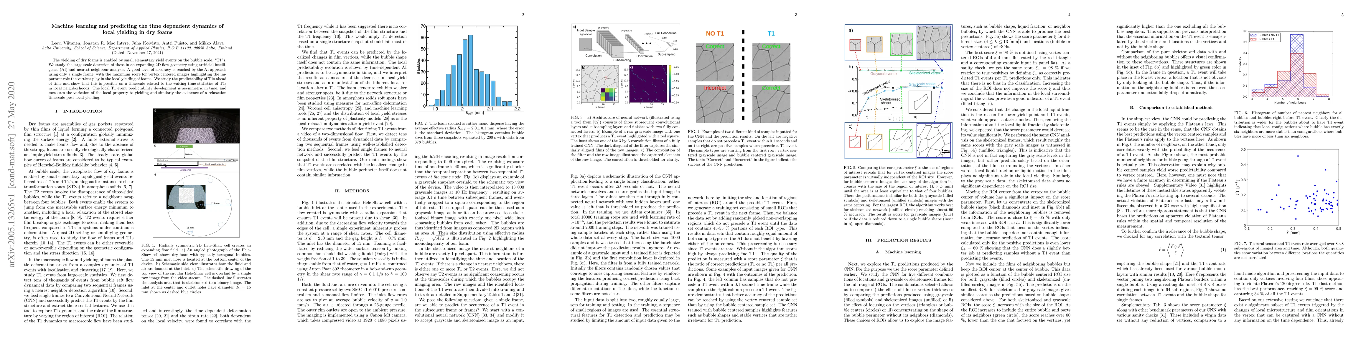The yielding of dry foams is enabled by small elementary yield events on the bubble scale, "T1"s. We study the large scale detection of these in an expanding 2D flow geometry using artificial intelligence (AI) and nearest neighbour analysis. A good level of accuracy is reached by the AI approach using only a single frame, with the maximum score for vertex centered images highlighting the important role the vertices play in the local yielding of foams. We study the predictability of T1s ahead of time and show that this is possible on a timescale related to the waiting time statistics of T1s in local neighborhoods. The local T1 event predictability development is asymmetric in time, and measures the variation of the local property to yielding and similarly the existence of a relaxation timescale post local yielding.