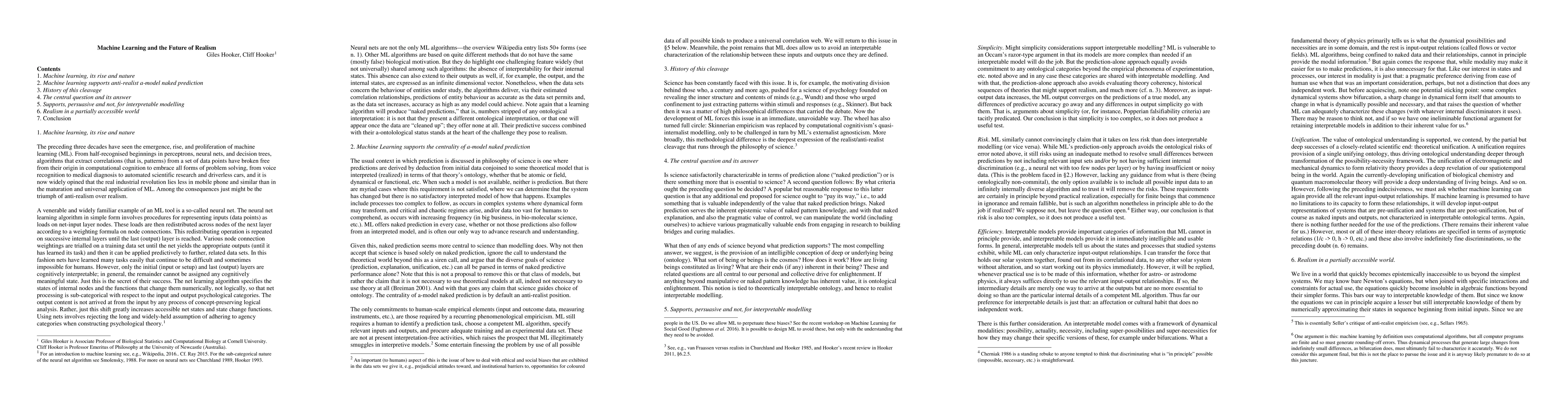 The preceding three decades have seen the emergence, rise, and proliferation of machine learning (ML). From half-recognised beginnings in perceptrons, neural nets, and decision trees, algorithms that extract correlations (that is, patterns) from a set of data points have broken free from their origin in computational cognition to embrace all forms of problem solving, from voice recognition to medical diagnosis to automated scientific research and driverless cars, and it is now widely opined that the real industrial revolution lies less in mobile phone and similar than in the maturation and universal application of ML. Among the consequences just might be the triumph of anti-realism over realism.