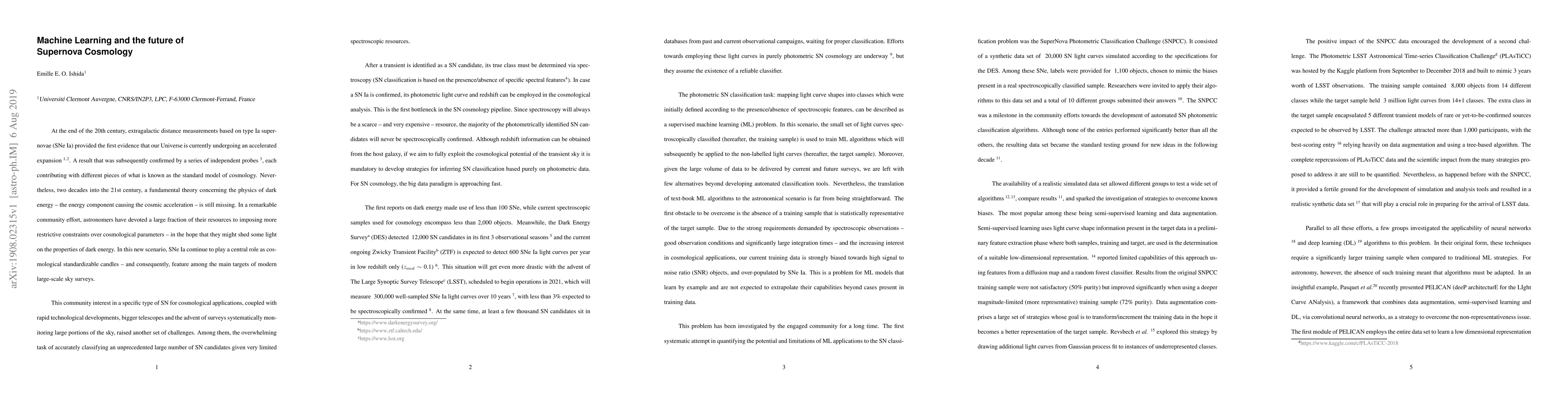 Machine Learning methods will play a fundamental role in our ability to optimize the science output from the next generation of large scale surveys. Given the peculiarities of astronomical data, it is crucial that algorithms are adapted to the data situation at hand. In this comment, I review the recent efforts towards the development of automatic systems to identify and classify supernova with the goal of enabling their use as cosmological standard candles.