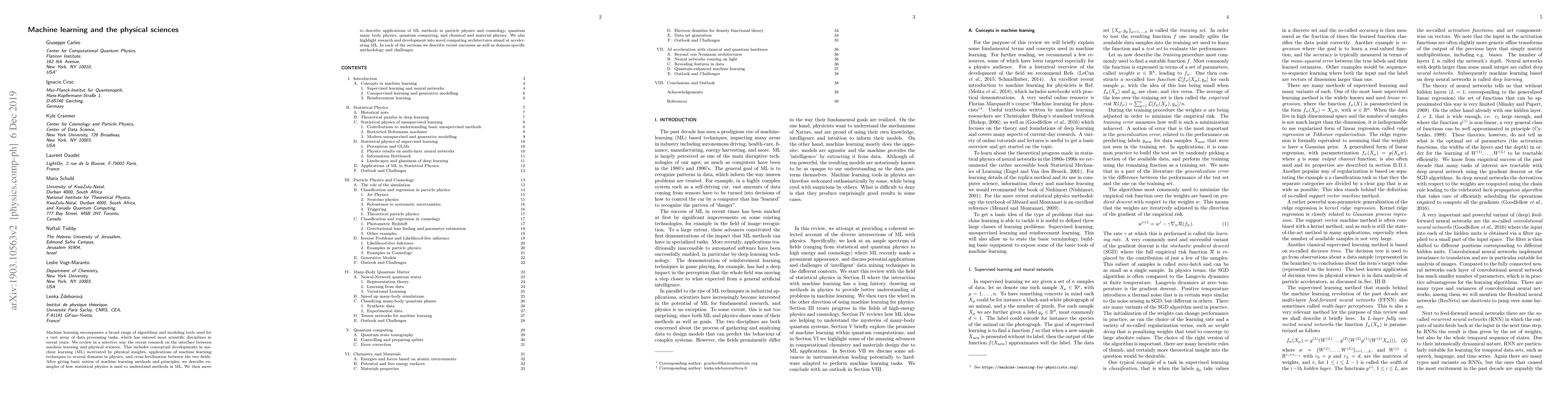 This paper reviews recent advancements at the intersection of machine learning and physical sciences, highlighting conceptual developments, applications in various physics domains, and novel computing architectures to accelerate ML. It covers successes, methodologies, and challenges in particle physics, cosmology, quantum physics, and material sciences.
