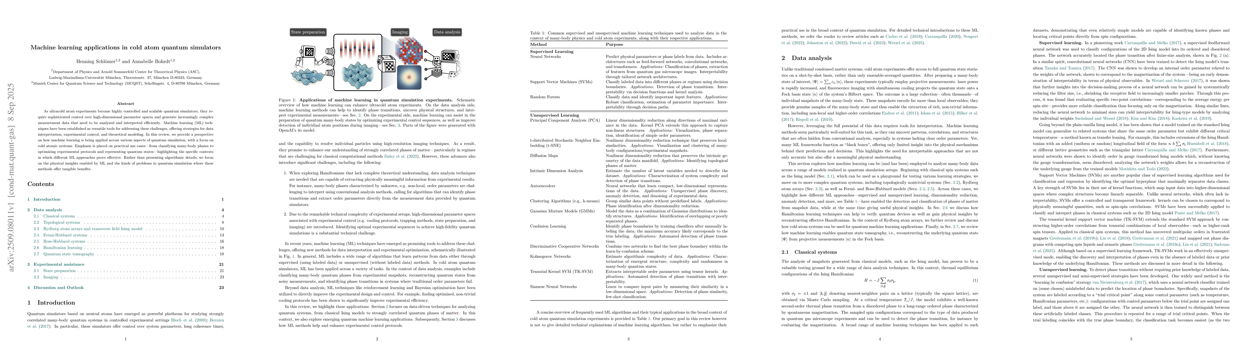 As ultracold atom experiments become highly controlled and scalable quantum simulators, they require sophisticated control over high-dimensional parameter spaces and generate increasingly complex measurement data that need to be analyzed and interpreted efficiently. Machine learning (ML) techniques have been established as versatile tools for addressing these challenges, offering strategies for data interpretation, experimental control, and theoretical modeling. In this review, we provide a perspective on how machine learning is being applied across various aspects of quantum simulation, with a focus on cold atomic systems. Emphasis is placed on practical use cases -- from classifying many-body phases to optimizing experimental protocols and representing quantum states -- highlighting the specific contexts in which different ML approaches prove effective. Rather than presenting algorithmic details, we focus on the physical insights enabled by ML and the kinds of problems in quantum simulation where these methods offer tangible benefits.