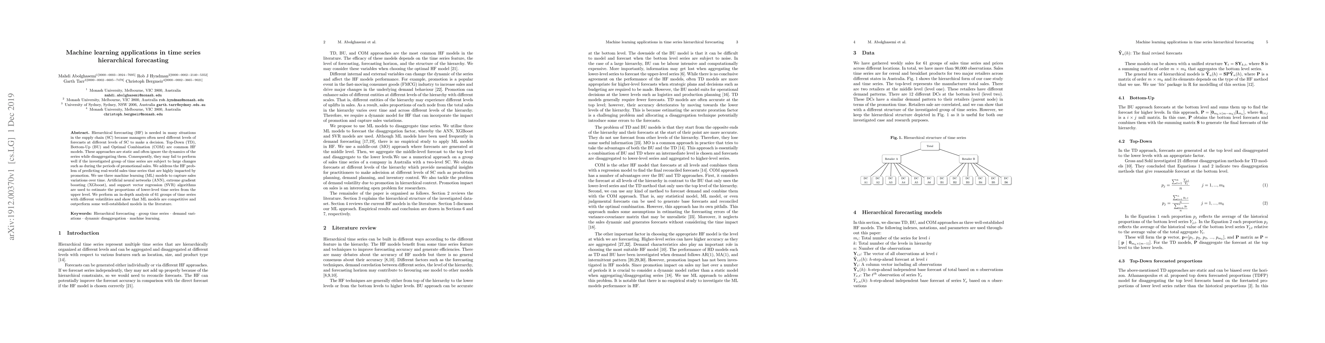 This paper explores machine learning applications for hierarchical forecasting in supply chain management, employing ANN, XGboost, and SVR to improve time series predictions during promotional sales. The study demonstrates that these models outperform traditional static methods by capturing dynamic sales variations.