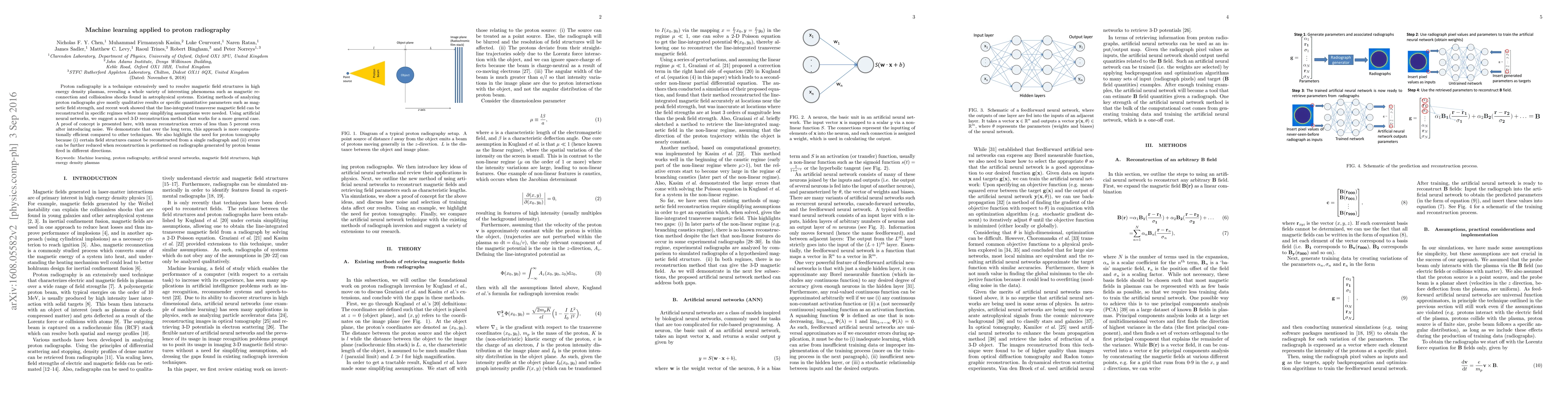 This paper proposes a novel 3-D reconstruction method using artificial neural networks for proton radiography, achieving mean reconstruction errors of less than 5 percent even with noise. The method is shown to be more computationally efficient than existing techniques and highlights the necessity of proton tomography for better field structure reconstruction.