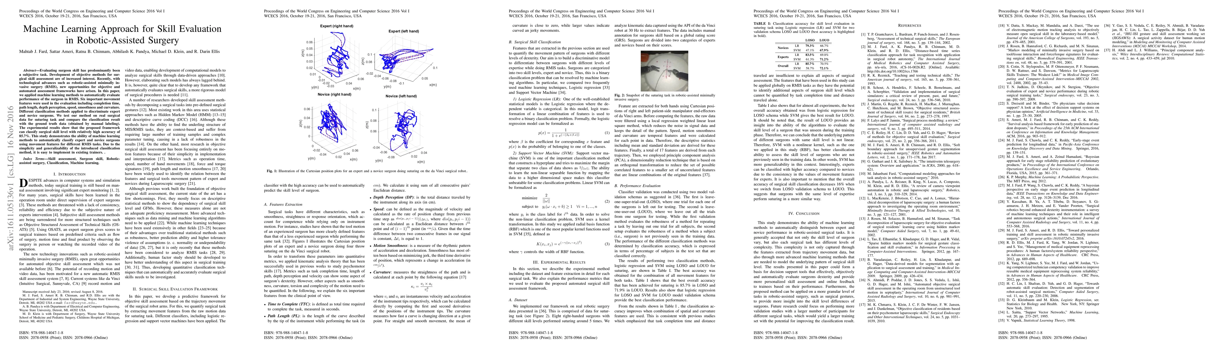 This paper proposes a machine learning framework to objectively evaluate surgeon skill in robotic-assisted minimally invasive surgery (RMIS) using movement features. The method achieves 85.7% accuracy in classifying expert and novice surgeons, demonstrating the potential for automated skill assessment in RMIS.