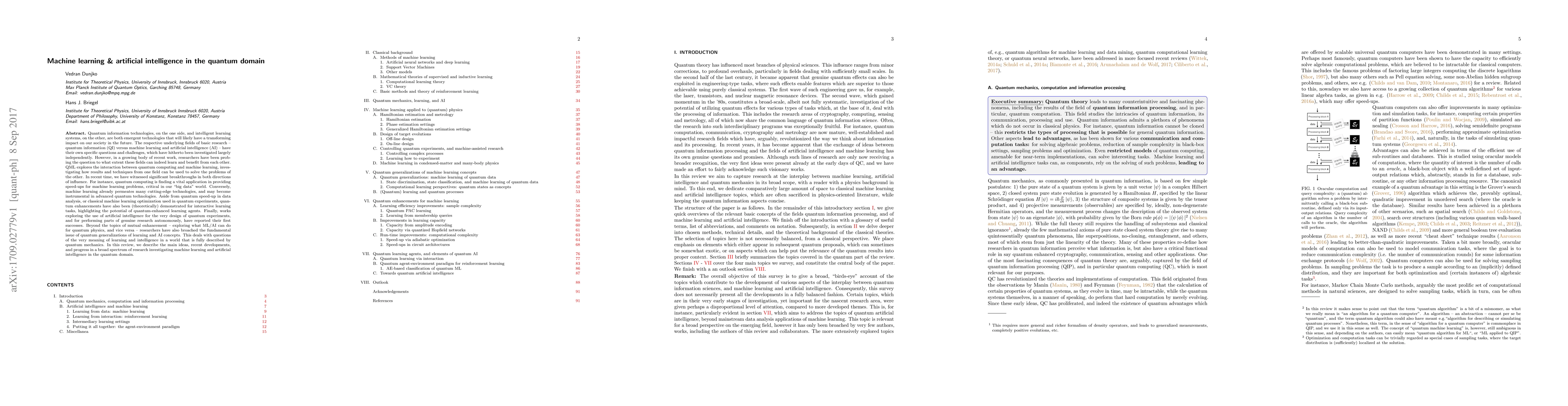 This paper reviews the emerging field of quantum machine learning (QML), detailing recent advancements where quantum computing provides speed-ups for machine learning and artificial intelligence tasks, and how machine learning aids in optimizing and designing quantum experiments. It explores the potential of quantum-enhanced learning agents and the fundamental implications of quantum mechanics on learning and intelligence.