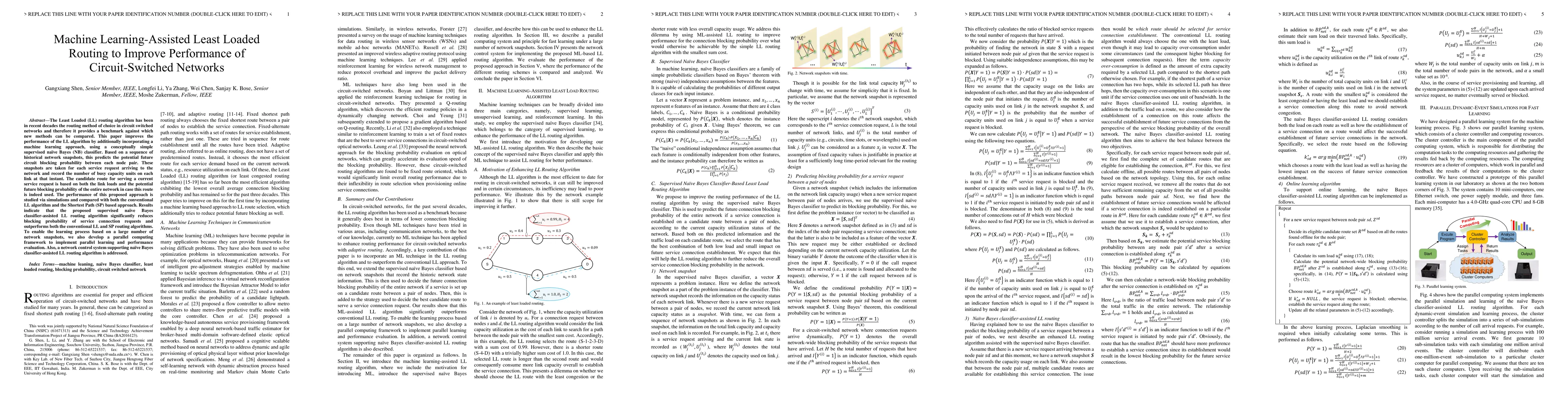 The Least Loaded (LL) routing algorithm has been in recent decades the routing method of choice in circuit switched networks and therefore it provides a benchmark against which new methods can be compared. This paper improves the performance of the LL algorithm by additionally incorporating a machine learning approach, using a conceptually simple supervised na\"ive Bayes (NB) classifier. Based on a sequence of historical network snapshots, this predicts the potential future circuit blocking probability between each node pair. These snapshots are taken for each service request arriving to the network and record the number of busy capacity units on each link at that instant. The candidate route for serving a current service request is based on both the link loads and the potential future blocking probability of the entire network in case this route is indeed used. The performance of this proposed approach is studied via simulations and compared with both the conventional LL algorithm and the Shortest Path (SP) based approach. Results indicate that the proposed supervised na\"ive Bayes classifier-assisted LL routing algorithm significantly reduces blocking probability of service connection requests and outperforms both the conventional LL and SP routing algorithms. To enable the learning process based on a large number of network snapshots, we also develop a parallel computing framework to implement parallel learning and performance evaluation. Also, a network control system supporting na\"ive Bayes classifier-assisted LL routing algorithm is addressed.