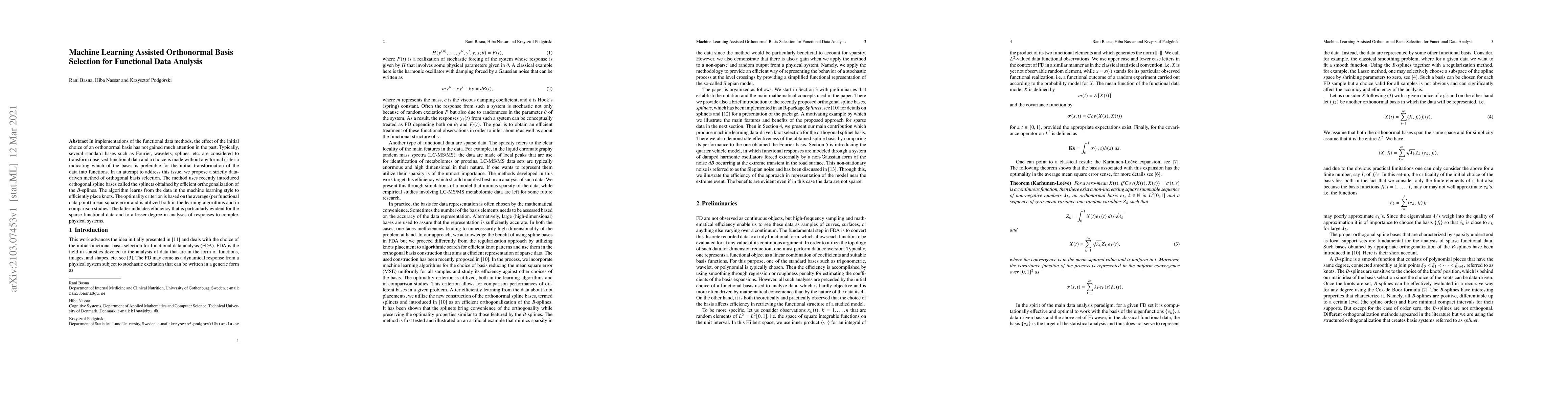 In implementations of the functional data methods, the effect of the initial choice of an orthonormal basis has not gained much attention in the past. Typically, several standard bases such as Fourier, wavelets, splines, etc. are considered to transform observed functional data and a choice is made without any formal criteria indicating which of the bases is preferable for the initial transformation of the data into functions. In an attempt to address this issue, we propose a strictly data-driven method of orthogonal basis selection. The method uses recently introduced orthogonal spline bases called the splinets obtained by efficient orthogonalization of the B-splines. The algorithm learns from the data in the machine learning style to efficiently place knots. The optimality criterion is based on the average (per functional data point) mean square error and is utilized both in the learning algorithms and in comparison studies. The latter indicates efficiency that is particularly evident for the sparse functional data and to a lesser degree in analyses of responses to complex physical systems.