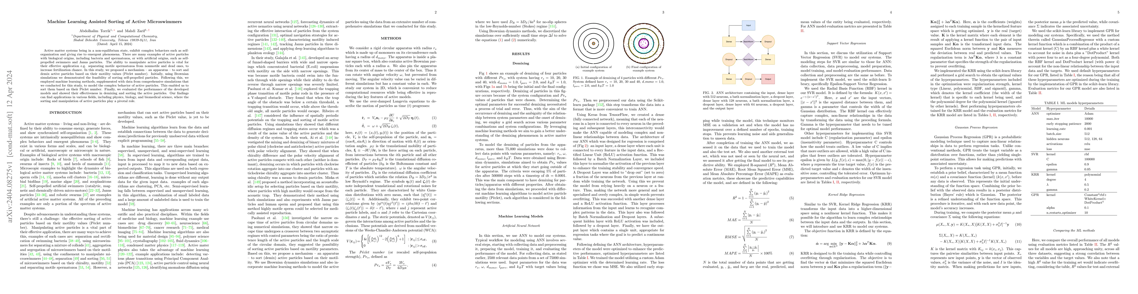 Active matter systems being in a non-equilibrium state, exhibit complex behaviors such as self-organization and giving rise to emergent phenomena. There are many examples of active particles with biological origins, including bacteria and spermatozoa, or with artificial origins, such as self-propelled swimmers and Janus particles. The ability to manipulate active particles is vital for their effective application e.g. separating motile spermatozoa from nonmotile and dead ones, to increase fertilization chance. In this study, we proposed a mechanism -- an apparatus -- to sort and demix active particles based on their motility values (P\`eclet number). Initially, using Brownian simulations we demonstrated the feasibility of sorting self-propelled particles. Following this, we employed machine learning methods, supplemented with data from comprehensive simulations that we conducted for this study, to model the complex behavior of active particles. This enabled us to sort them based on their P\`eclet number. Finally, we evaluated the performance of the developed models and showed their effectiveness in demixing and sorting the active particles. Our findings can find applications in various fields, including physics, biology, and biomedical science, where the sorting and manipulation of active particles play a pivotal role.