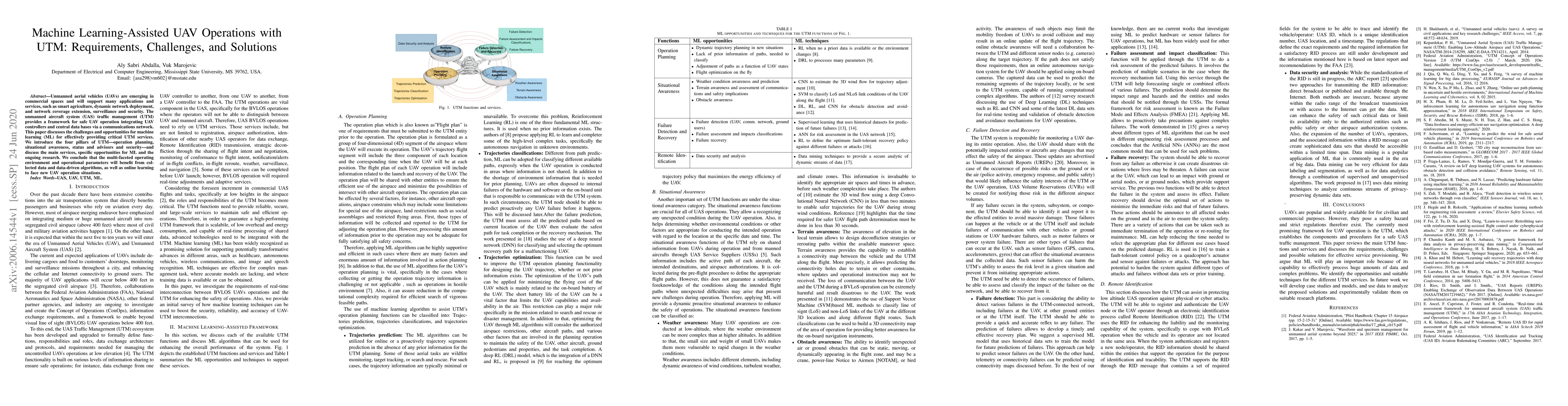 A research paper explores the role of machine learning in UTM for safe UAV operation, highlighting opportunities and challenges for data-driven algorithms and online learning to tackle complex operating environments.