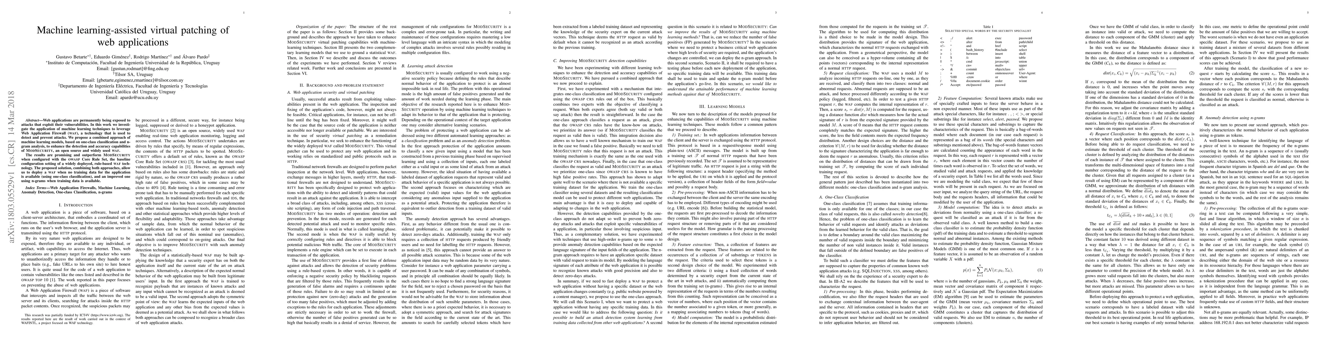This paper proposes a machine learning-assisted virtual patching method using Web Application Firewalls (WAF) to detect and prevent attacks on web applications. The approach combines one-class classification and n-gram analysis to enhance the detection capabilities of MODSECURITY, outperforming its baseline configuration.