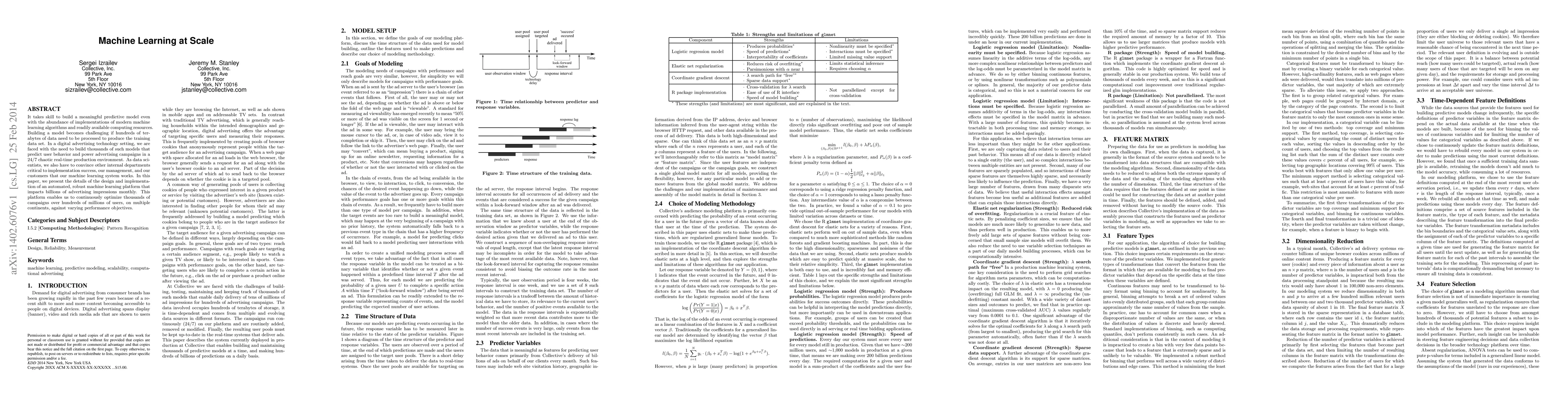 It takes skill to build a meaningful predictive model even with the abundance of implementations of modern machine learning algorithms and readily available computing resources. Building a model becomes challenging if hundreds of terabytes of data need to be processed to produce the training data set. In a digital advertising technology setting, we are faced with the need to build thousands of such models that predict user behavior and power advertising campaigns in a 24/7 chaotic real-time production environment. As data scientists, we also have to convince other internal departments critical to implementation success, our management, and our customers that our machine learning system works. In this paper, we present the details of the design and implementation of an automated, robust machine learning platform that impacts billions of advertising impressions monthly. This platform enables us to continuously optimize thousands of campaigns over hundreds of millions of users, on multiple continents, against varying performance objectives.