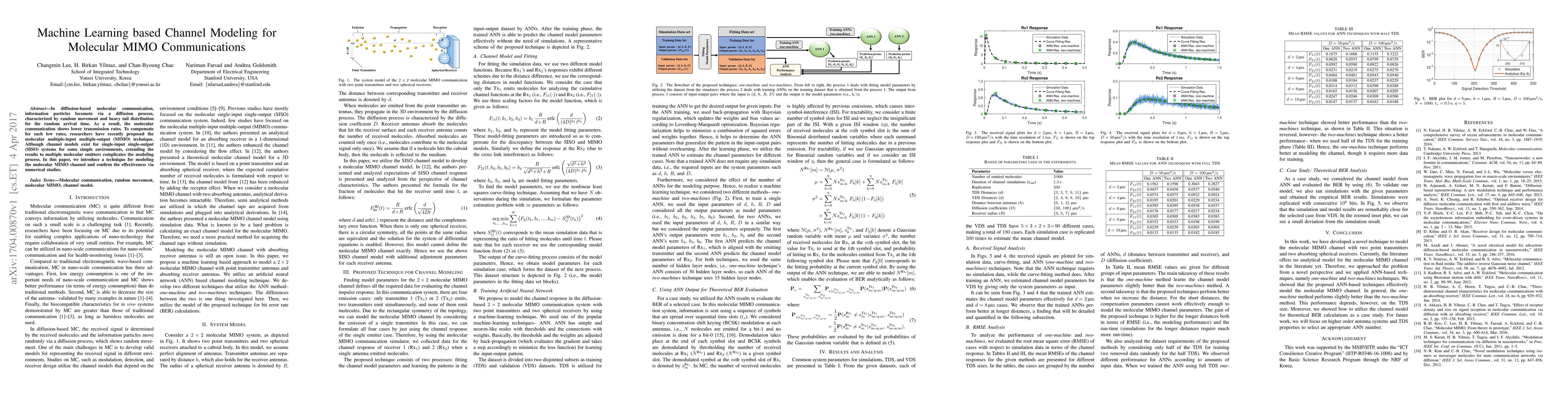 An ANN-based approach was used to model the molecular MIMO channel with two-point transmitters and two absorbing spherical receivers.