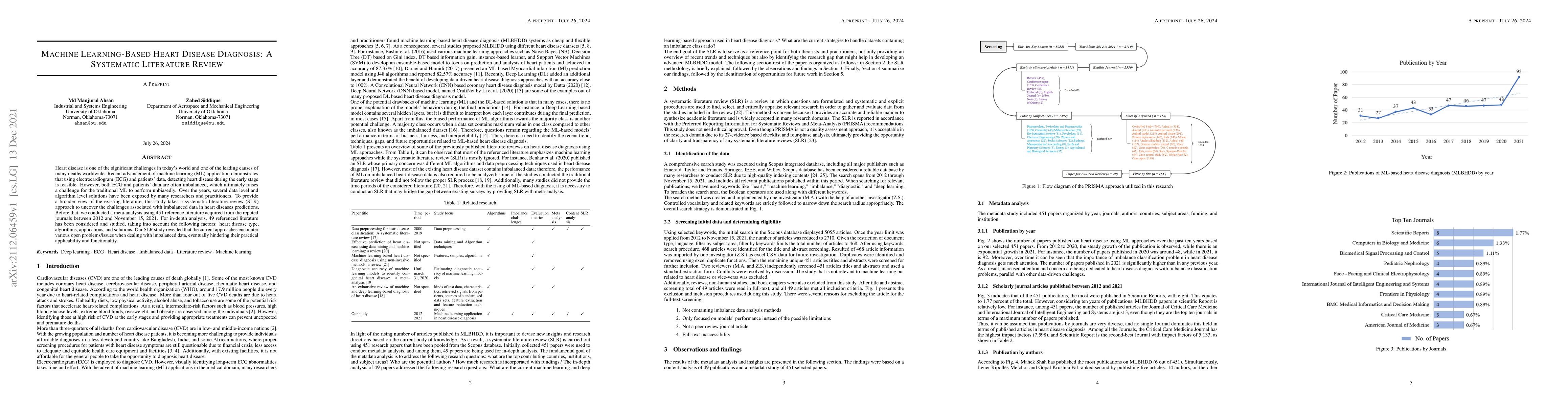This paper conducts a systematic literature review of machine learning applications for diagnosing heart disease, focusing on the challenges posed by imbalanced ECG and patient data. The study analyzes 49 key papers to identify existing solutions and highlights ongoing issues that hinder practical implementation.