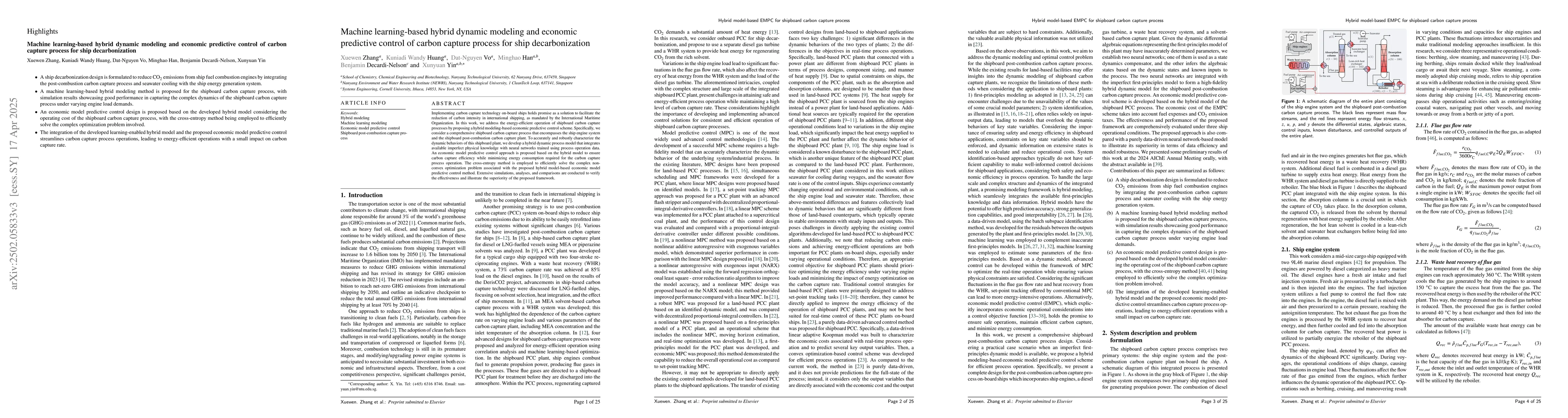 The paper presents a novel hybrid dynamic modeling approach that combines first-principles models with neural networks for accurate process characterization, followed by an economic EMPC scheme for energy-efficient carbon capture.