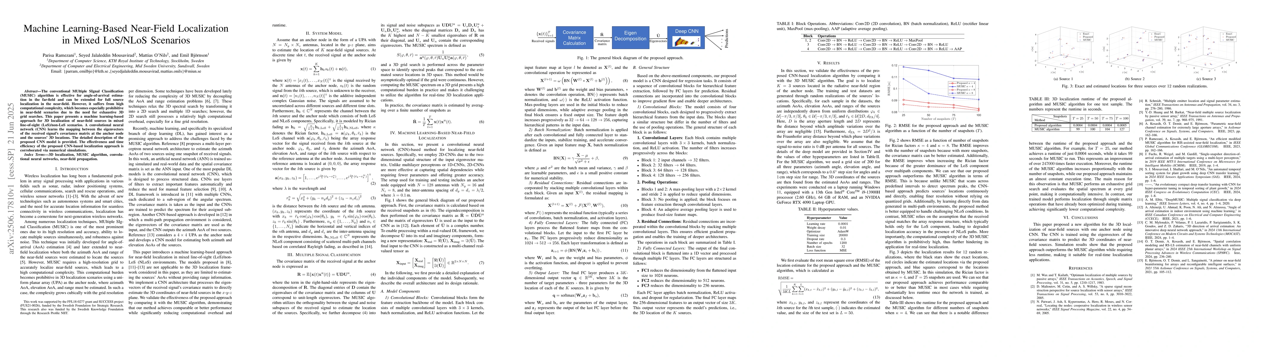 The conventional MUltiple SIgnal Classification (MUSIC) algorithm is effective for angle-of-arrival estimation in the far-field and can be extended for full source localization in the near-field. However, it suffers from high computational complexity, which becomes especially prohibitive in near-field scenarios due to the need for exhaustive 3D grid searches. This paper presents a machine learning-based approach for 3D localization of near-field sources in mixed line-of-sight (LoS)/non-LoS scenarios. A convolutional neural network (CNN) learns the mapping between the eigenvectors of the received signal's covariance matrix at the anchor node and the sources' 3D locations. The detailed description of the proposed CNN model is provided. The effectiveness and time efficiency of the proposed CNN-based localization approach is corroborated via numerical simulations.