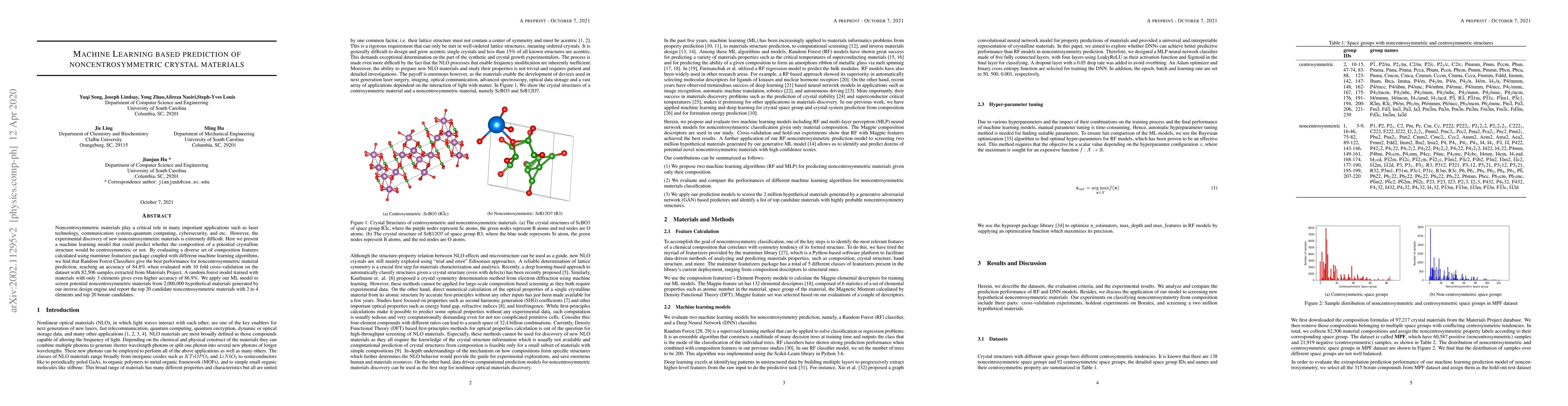 This paper introduces a machine learning model to predict noncentrosymmetric crystal materials, crucial for applications in laser technology and quantum computing. The Random Forest Classifier achieved an 84.8% accuracy in predicting noncentrosymmetric materials, with even higher accuracy for materials composed of only three elements.