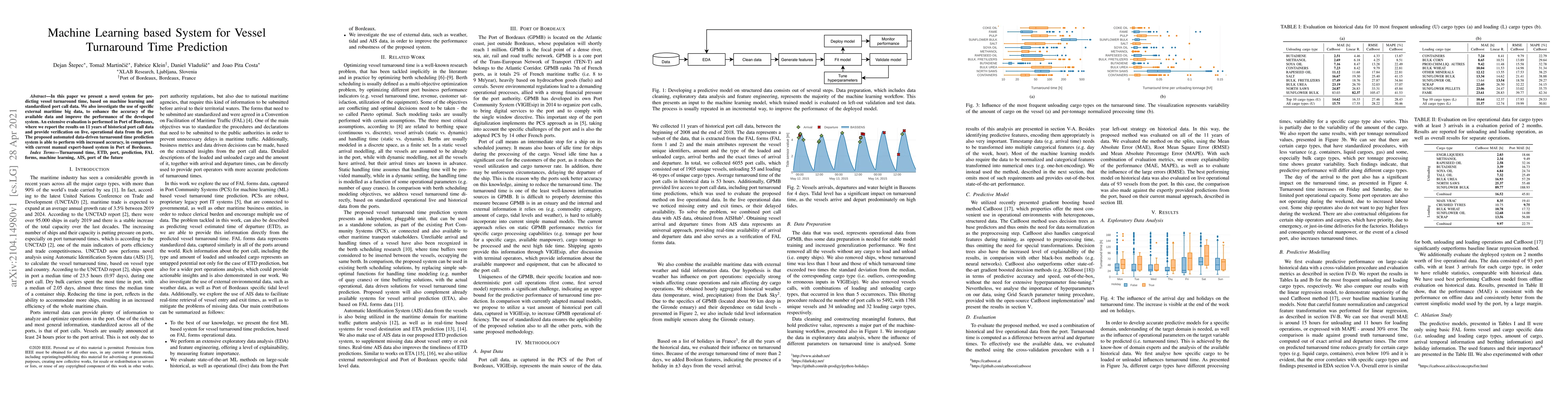 In this paper, we present a novel system for predicting vessel turnaround time, based on machine learning and standardized port call data. We also investigate the use of specific external maritime big data, to enhance the accuracy of the available data and improve the performance of the developed system. An extensive evaluation is performed in Port of Bordeaux, where we report the results on 11 years of historical port call data and provide verification on live, operational data from the port. The proposed automated data-driven turnaround time prediction system is able to perform with increased accuracy, in comparison with the current manual expert-based system in Port of Bordeaux.