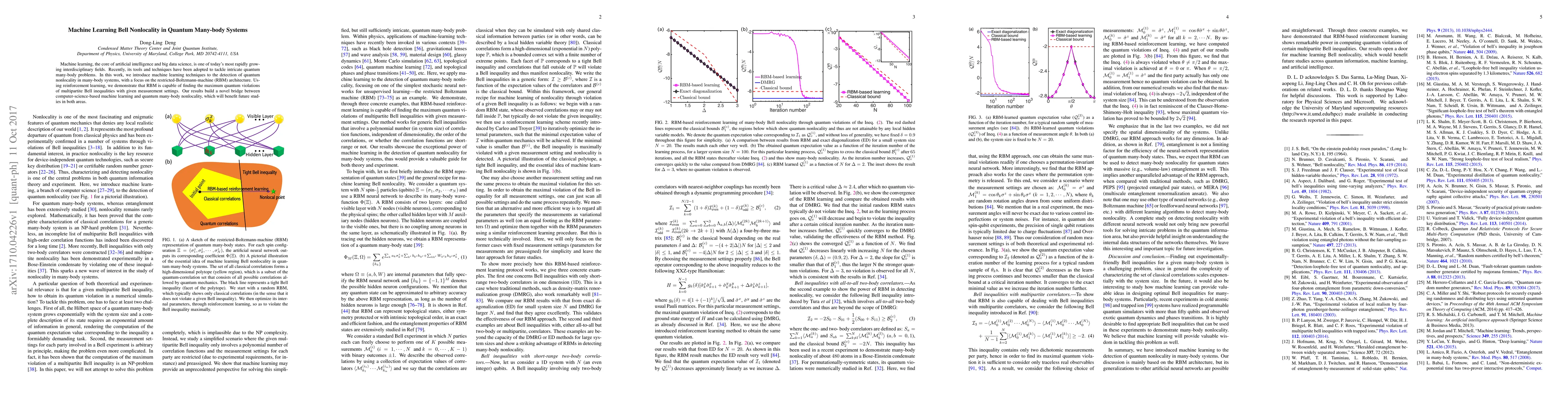 This paper employs machine learning, specifically restricted-Boltzmann-machine architecture, to detect quantum nonlocality in many-body systems, using reinforcement learning to maximize violations of multipartite Bell inequalities. This work establishes a new connection between machine learning and quantum many-body nonlocality, potentially enhancing future research in both fields.