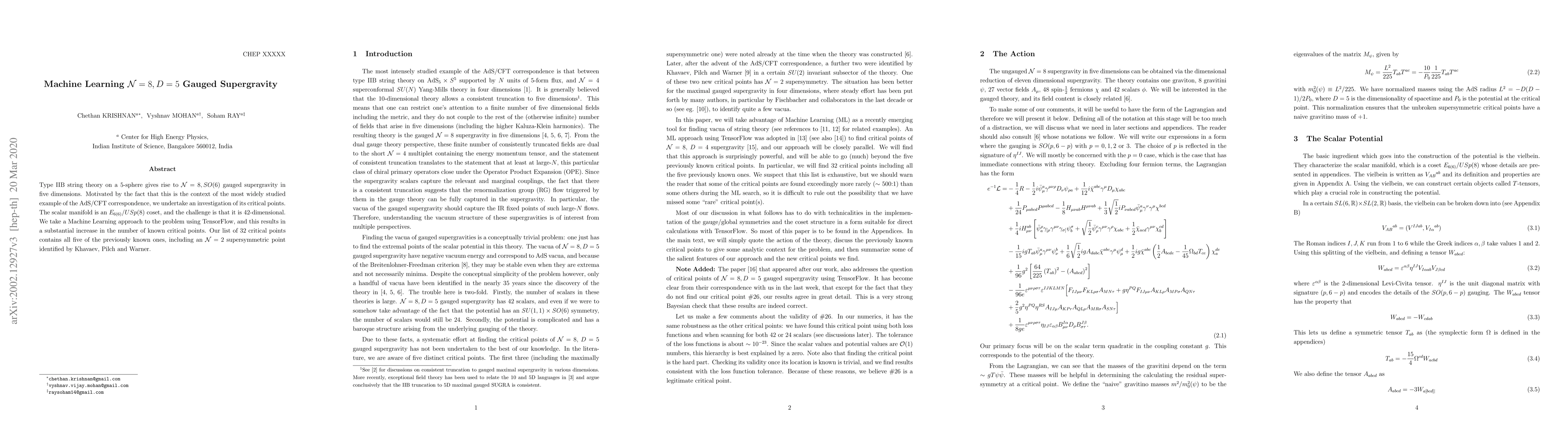 This paper employs machine learning techniques to identify critical points in ${\cal N}=8, D=5$ gauged supergravity derived from Type IIB string theory on a 5-sphere. The study significantly expands the known critical points using TensorFlow, resulting in a list of 32 points, including five previously known ones.