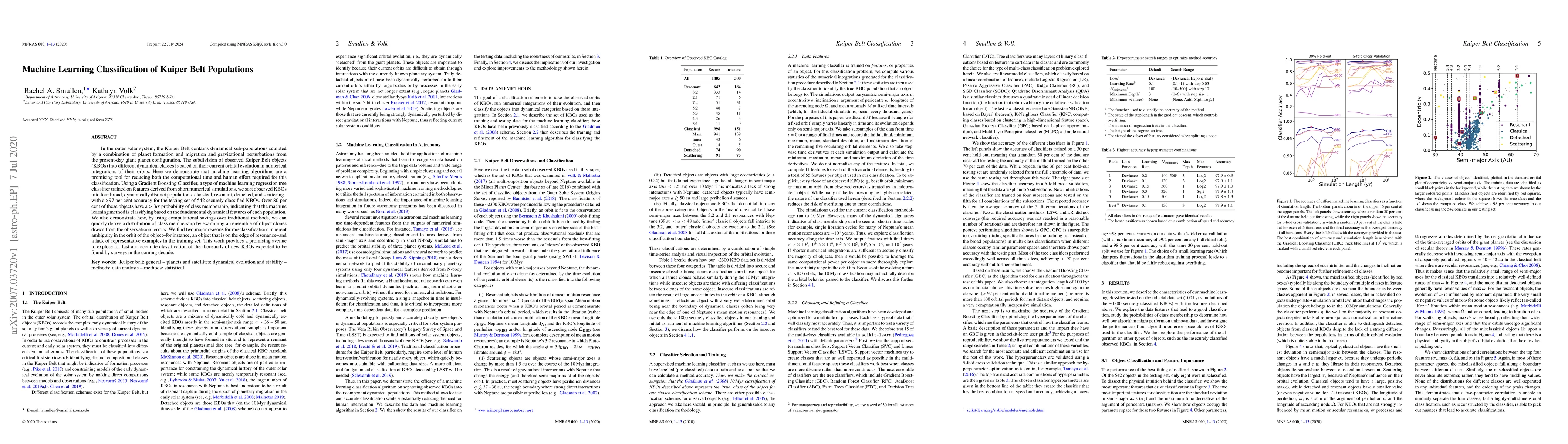 In the outer solar system, the Kuiper Belt contains dynamical sub-populations sculpted by a combination of planet formation and migration and gravitational perturbations from the present-day giant planet configuration. The subdivision of observed Kuiper Belt objects (KBOs) into different dynamical classes is based on their current orbital evolution in numerical integrations of their orbits. Here we demonstrate that machine learning algorithms are a promising tool for reducing both the computational time and human effort required for this classification. Using a Gradient Boosting Classifier, a type of machine learning regression tree classifier trained on features derived from short numerical simulations, we sort observed KBOs into four broad, dynamically distinct populations - classical, resonant, detached, and scattering - with a >97 per cent accuracy for the testing set of 542 securely classified KBOs. Over 80 per cent of these objects have a $>3\sigma$ probability of class membership, indicating that the machine learning method is classifying based on the fundamental dynamical features of each population. We also demonstrate how, by using computational savings over traditional methods, we can quickly derive a distribution of class membership by examining an ensemble of object clones drawn from the observational errors. We find two major reasons for misclassification: inherent ambiguity in the orbit of the object - for instance, an object that is on the edge of resonance - and a lack of representative examples in the training set. This work provides a promising avenue to explore for fast and accurate classification of the thousands of new KBOs expected to be found by surveys in the coming decade.