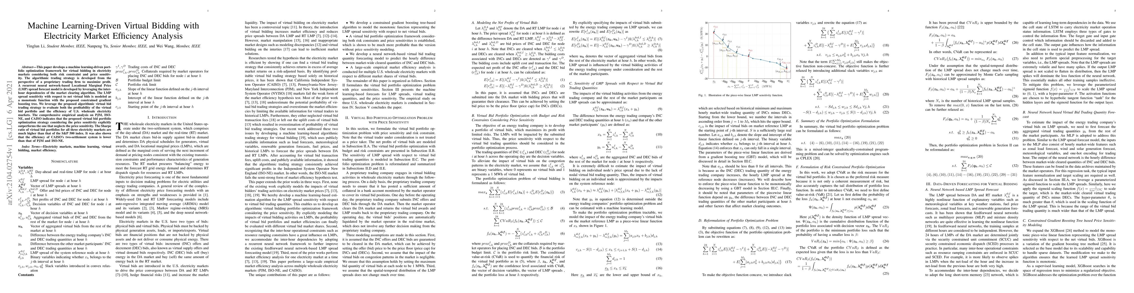 This paper proposes a machine learning-driven portfolio optimization framework for virtual bidding in electricity markets, leveraging a recurrent neural network for price forecasting and gradient boosting for bid sensitivity modeling. Empirical analysis shows that the proposed strategy significantly outperforms traditional methods, with higher profitability and efficiency in U.S. wholesale electricity markets.