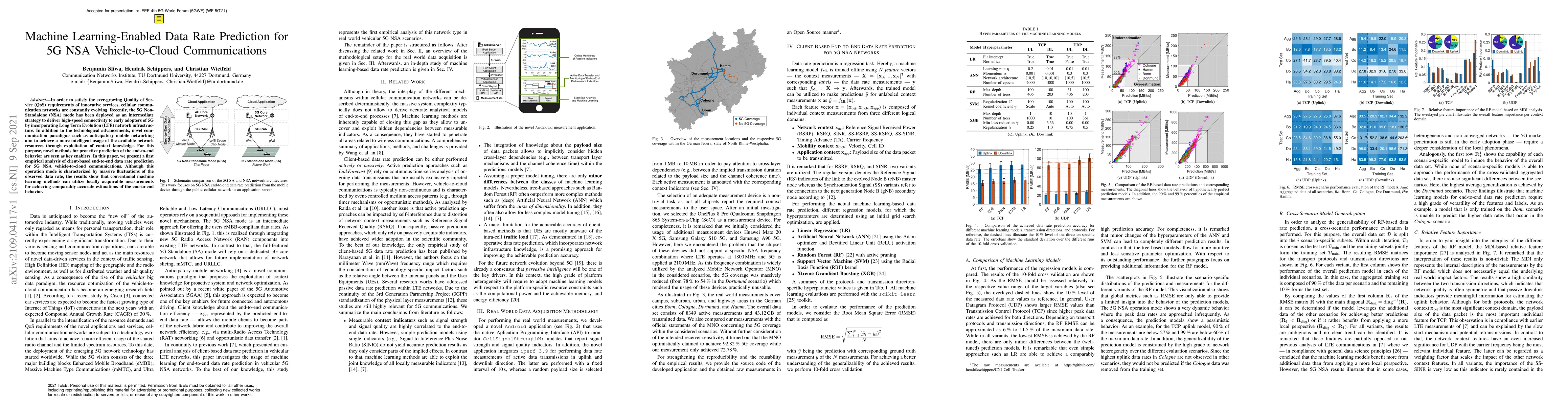 This paper explores machine learning methods for predicting data rates in 5G NonStandalone (NSA) vehicle-to-cloud communications, demonstrating that conventional machine learning techniques can provide reasonably accurate end-to-end behavior estimations despite significant data rate fluctuations.