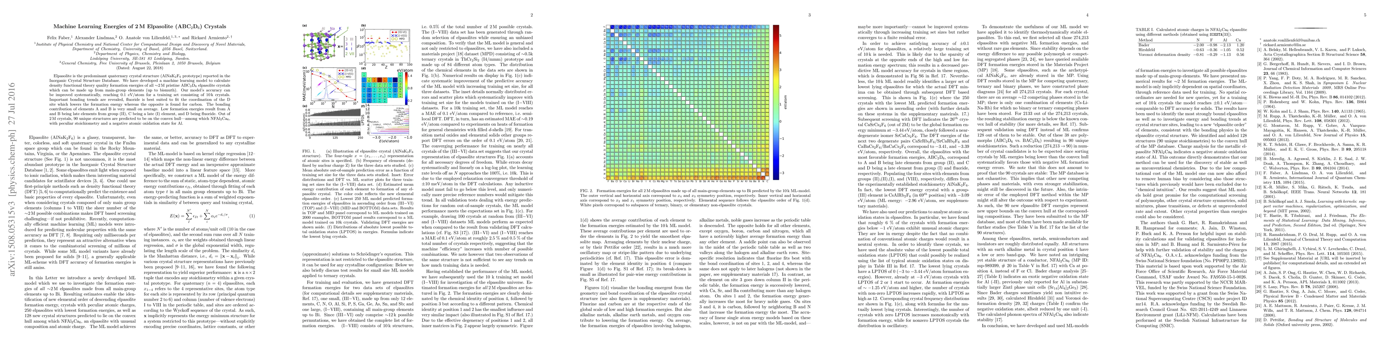 Elpasolite is the predominant quaternary crystal structure (AlNaK$_2$F$_6$ prototype) reported in the Inorganic Crystal Structure Database. We have developed a machine learning model to calculate density functional theory quality formation energies of all $\sim$2 M pristine ABC$_2$D$_6$ elpasolite crystals which can be made up from main-group elements (up to bismuth). Our model's accuracy can be improved systematically, reaching 0.1 eV/atom for a training set consisting of 10 k crystals. Important bonding trends are revealed, fluoride is best suited to fit the coordination of the D site which lowers the formation energy whereas the opposite is found for carbon. The bonding contribution of elements A and B is very small on average. Low formation energies result from A and B being late elements from group (II), C being a late (I) element, and D being fluoride. Out of 2 M crystals, 90 unique structures are predicted to be on the convex hull---among which NFAl$_2$Ca$_6$, with peculiar stoichiometry and a negative atomic oxidation state for Al.
