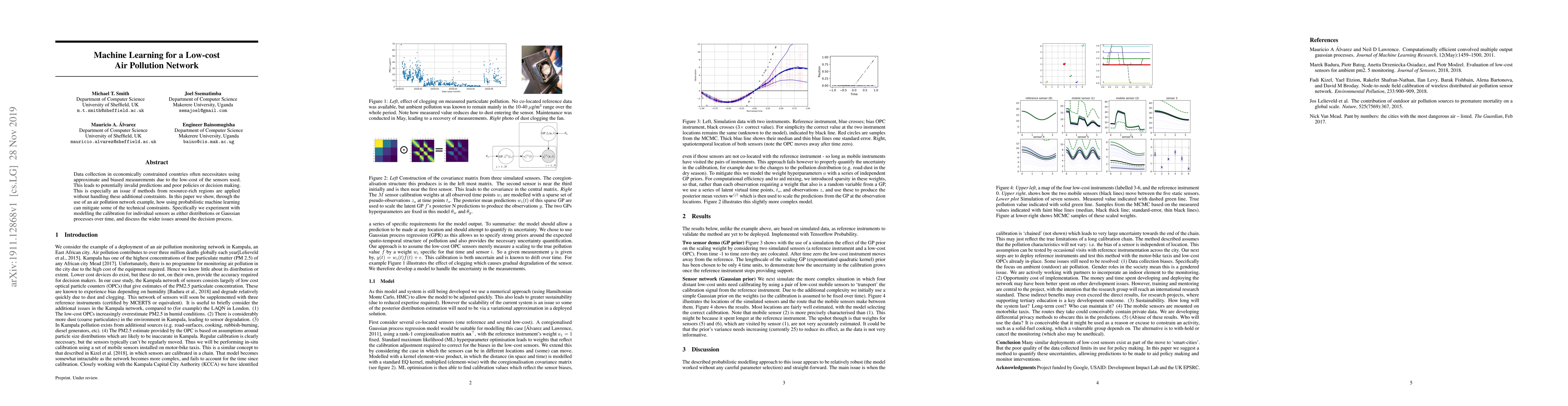 Data collection in economically constrained countries often necessitates using approximate and biased measurements due to the low-cost of the sensors used. This leads to potentially invalid predictions and poor policies or decision making. This is especially an issue if methods from resource-rich regions are applied without handling these additional constraints. In this paper we show, through the use of an air pollution network example, how using probabilistic machine learning can mitigate some of the technical constraints. Specifically we experiment with modelling the calibration for individual sensors as either distributions or Gaussian processes over time, and discuss the wider issues around the decision process.