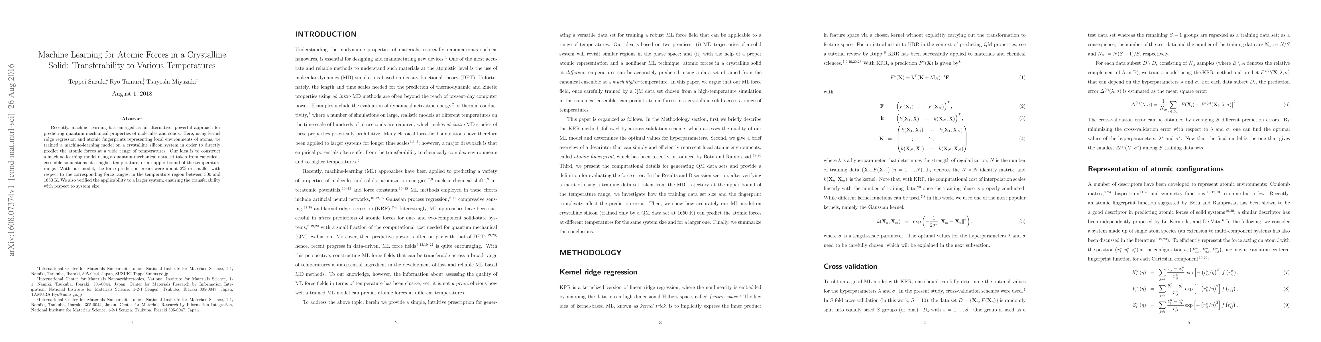 Recently, machine learning has emerged as an alternative, powerful approach for predicting quantum-mechanical properties of molecules and solids. Here, using kernel ridge regression and atomic fingerprints representing local environments of atoms, we trained a machine-learning model on a crystalline silicon system in order to directly predict the atomic forces at a wide range of temperatures. Our idea is to construct a machine-learning model using a quantum-mechanical data set taken from canonical-ensemble simulations at a higher temperature, or an upper bound of the temperature range. With our model, the force prediction errors were about 2% or smaller with respect to the corresponding force ranges, in the temperature region between 300 and 1650 K. We also verified the applicability to a larger system, ensuring the transferability with respect to system size.