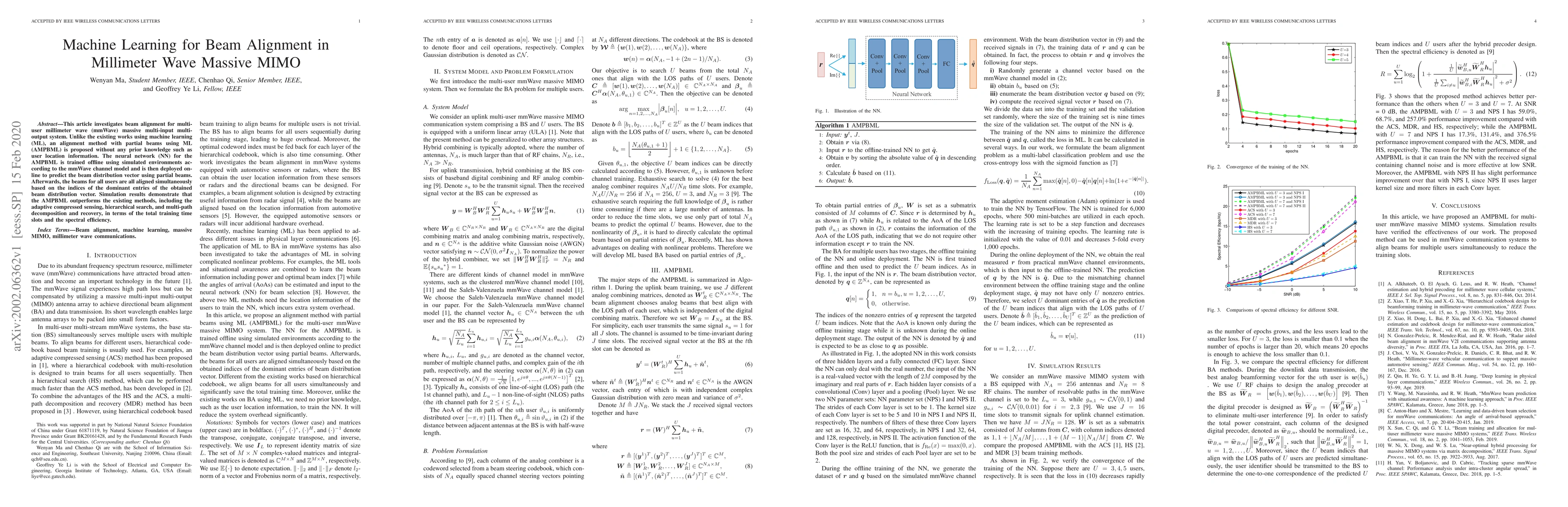 This paper proposes AMPBML, a machine learning method for beam alignment in mmWave massive MIMO systems without prior user location information. The neural network is trained offline and deployed online to predict beam distribution, achieving better performance in training time and spectral efficiency compared to existing methods.