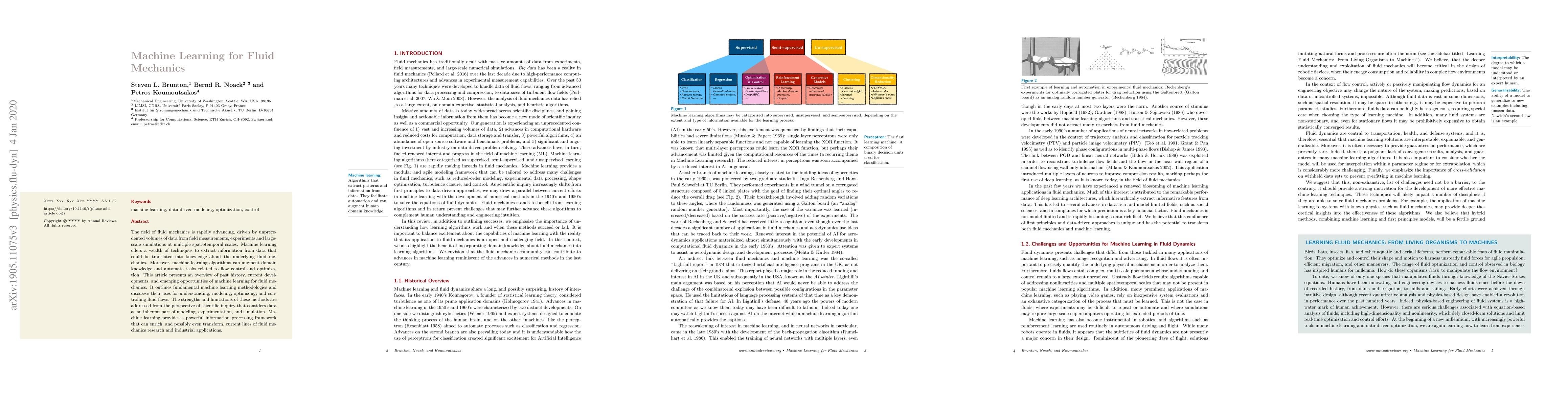 A comprehensive review of machine learning applications in fluid mechanics, including flow modeling, optimization, and control.