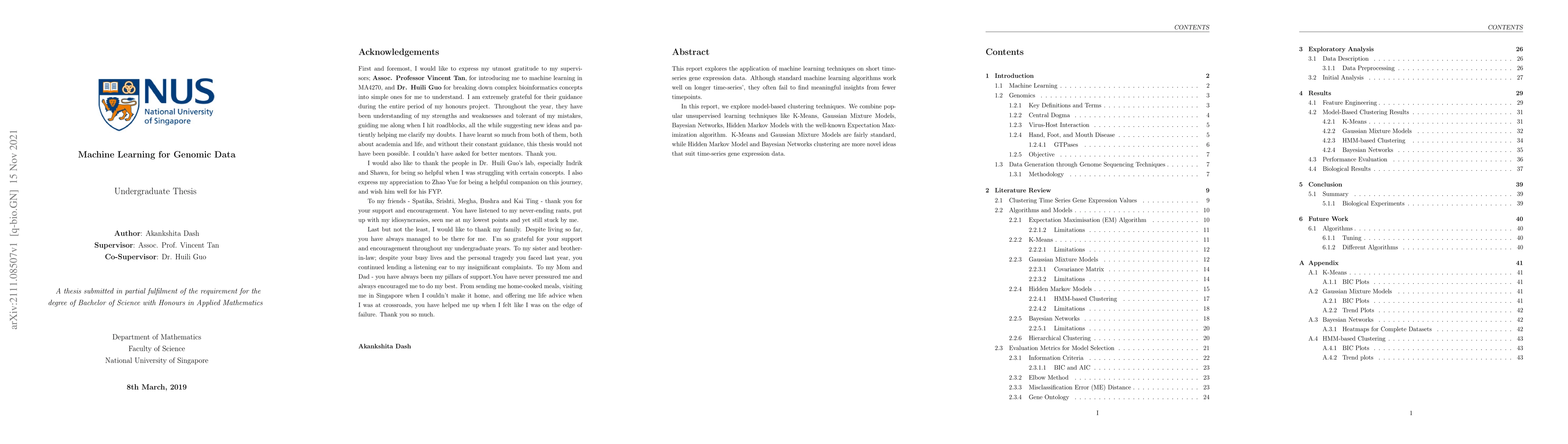 This report explores the application of machine learning techniques on short timeseries gene expression data. Although standard machine learning algorithms work well on longer time-series', they often fail to find meaningful insights from fewer timepoints. In this report, we explore model-based clustering techniques. We combine popular unsupervised learning techniques like K-Means, Gaussian Mixture Models, Bayesian Networks, Hidden Markov Models with the well-known Expectation Maximization algorithm. K-Means and Gaussian Mixture Models are fairly standard, while Hidden Markov Model and Bayesian Networks clustering are more novel ideas that suit time-series gene expression data.