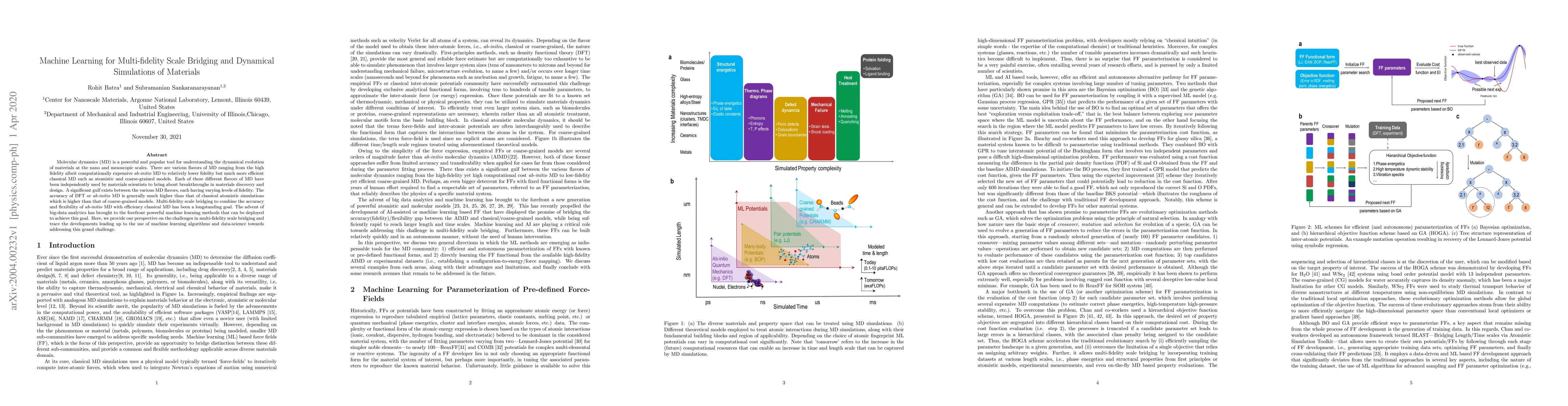 This paper discusses the challenges of integrating multi-fidelity molecular dynamics simulations to bridge the gap between high-fidelity ab-initio methods and efficient classical models, leveraging machine learning to enhance material discovery and design. It reviews the progress and potential of data-science techniques in achieving this goal.