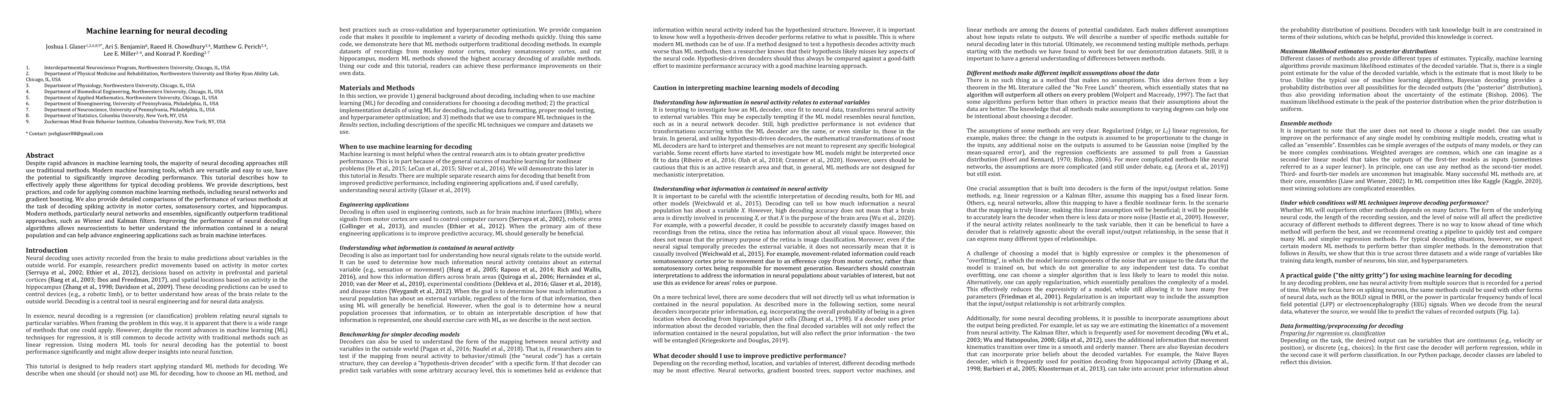 This paper explores the application of modern machine learning techniques, such as neural networks and gradient boosting, for neural decoding, demonstrating their superior performance over traditional methods like Wiener and Kalman filters. It provides practical guidance, best practices, and code examples to enhance decoding of neural activity in motor, somatosensory, and hippocampus regions.
