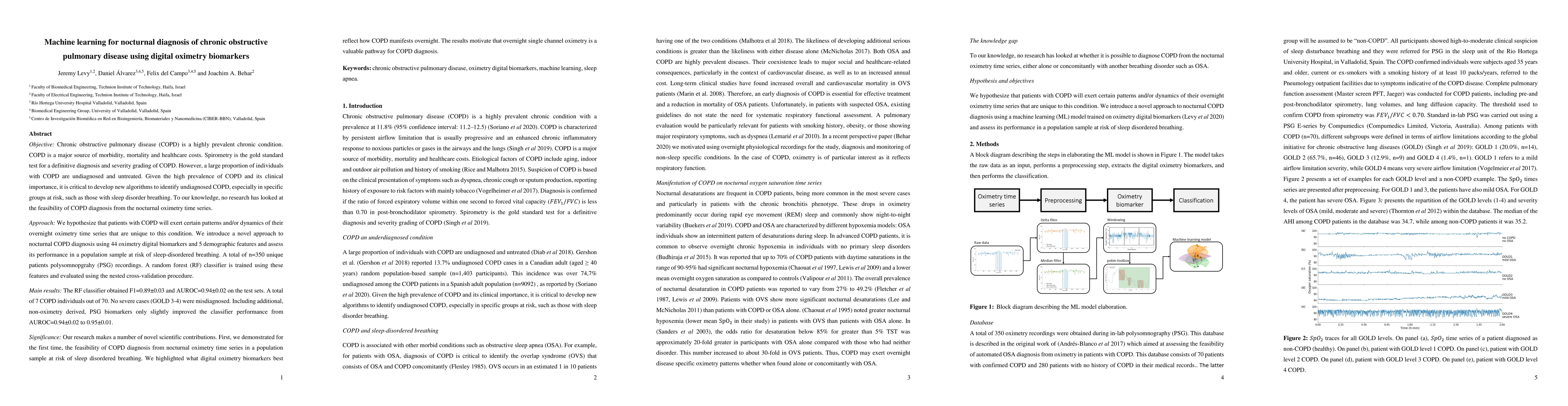 This paper explores the use of machine learning and nocturnal oximetry biomarkers to diagnose undiagnosed COPD, particularly in patients at risk of sleep-disordered breathing. The study introduces a novel random forest classifier trained on 44 oximetry biomarkers and demographic features, demonstrating the feasibility of diagnosing COPD from overnight oximetry data.