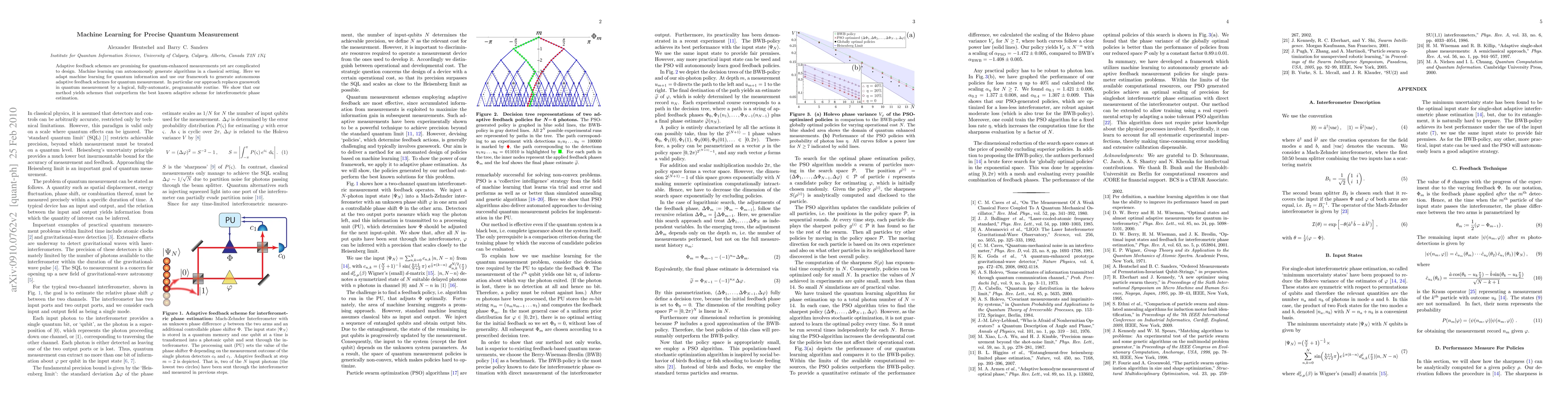 This paper explores using machine learning to autonomously generate adaptive feedback schemes for quantum measurement, demonstrating that the approach outperforms existing adaptive methods for interferometric phase estimation. The method replaces guesswork with a logical, fully-automatic, programmable routine.