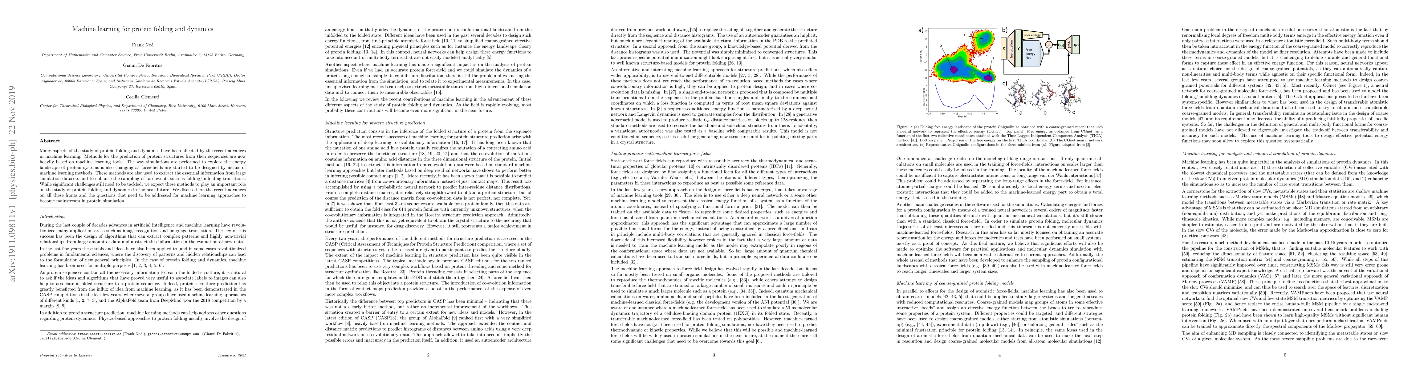 Many aspects of the study of protein folding and dynamics have been affected by the recent advances in machine learning. Methods for the prediction of protein structures from their sequences are now heavily based on machine learning tools. The way simulations are performed to explore the energy landscape of protein systems is also changing as force-fields are started to be designed by means of machine learning methods. These methods are also used to extract the essential information from large simulation datasets and to enhance the sampling of rare events such as folding/unfolding transitions. While significant challenges still need to be tackled, we expect these methods to play an important role on the study of protein folding and dynamics in the near future. We discuss here the recent advances on all these fronts and the questions that need to be addressed for machine learning approaches to become mainstream in protein simulation.