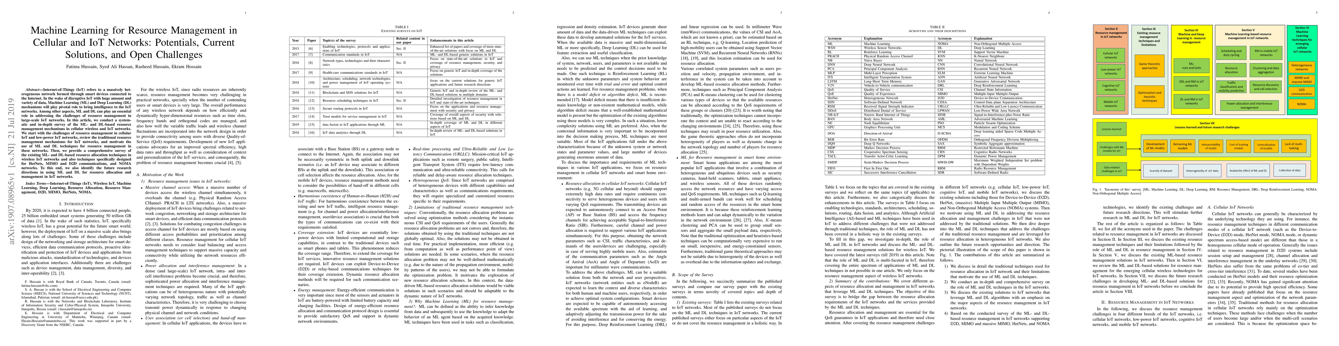 This paper surveys machine learning (ML) and deep learning (DL) techniques for resource management in cellular and IoT networks, highlighting current solutions and identifying open challenges. It reviews traditional resource management methods and explores advanced ML-based approaches for resource allocation in various network types.