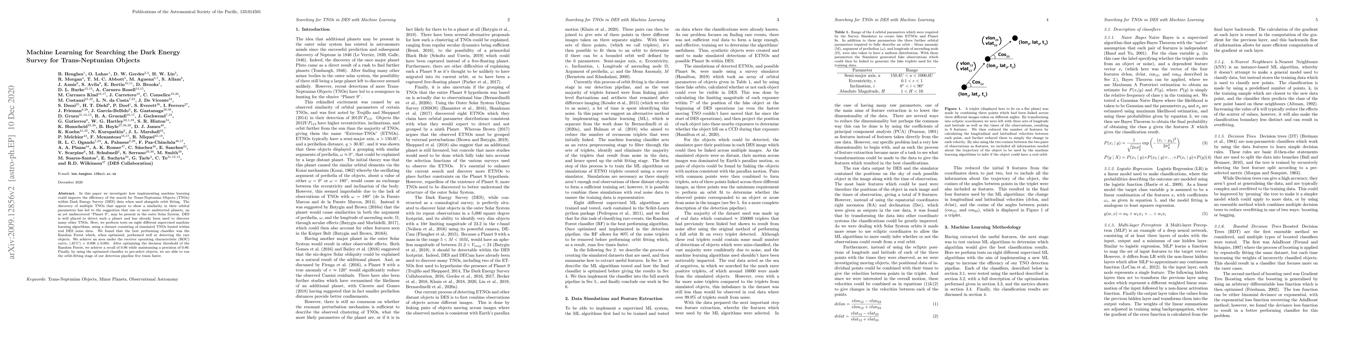 In this paper we investigate how implementing machine learning could improve the efficiency of the search for Trans-Neptunian Objects (TNOs) within Dark Energy Survey (DES) data when used alongside orbit fitting. The discovery of multiple TNOs that appear to show a similarity in their orbital parameters has led to the suggestion that one or more undetected planets, an as yet undiscovered "Planet 9", may be present in the outer Solar System. DES is well placed to detect such a planet and has already been used to discover many other TNOs. Here, we perform tests on eight different supervised machine learning algorithms, using a dataset consisting of simulated TNOs buried within real DES noise data. We found that the best performing classifier was the Random Forest which, when optimised, performed well at detecting the rare objects. We achieve an area under the receiver operating characteristic (ROC) curve, (AUC) $= 0.996 \pm 0.001$. After optimizing the decision threshold of the Random Forest, we achieve a recall of 0.96 while maintaining a precision of 0.80. Finally, by using the optimized classifier to pre-select objects, we are able to run the orbit-fitting stage of our detection pipeline five times faster.