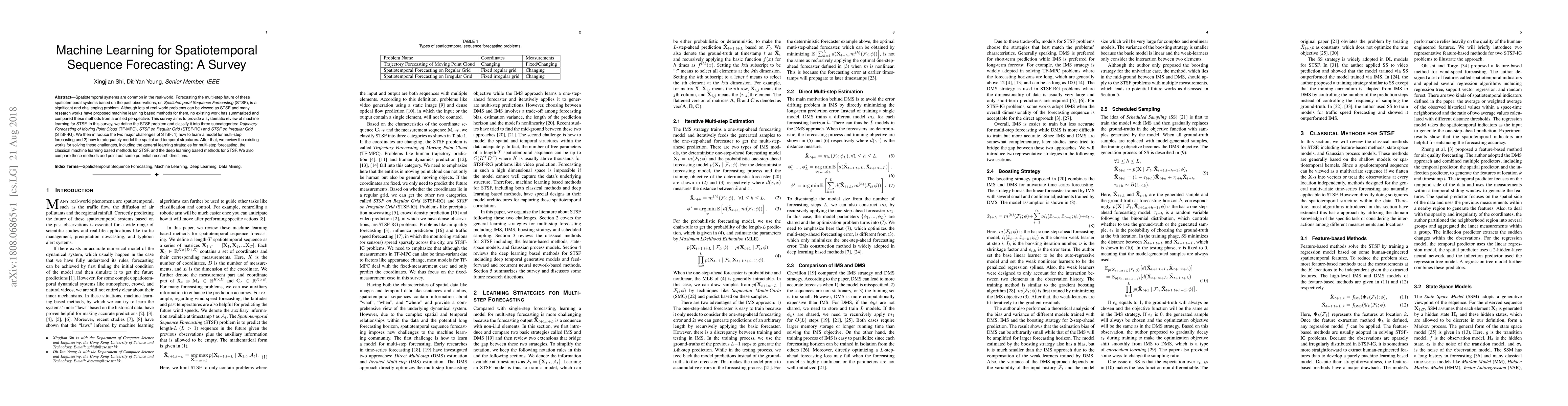 Spatiotemporal systems are common in the real-world. Forecasting the multi-step future of these spatiotemporal systems based on the past observations, or, Spatiotemporal Sequence Forecasting (STSF), is a significant and challenging problem. Although lots of real-world problems can be viewed as STSF and many research works have proposed machine learning based methods for them, no existing work has summarized and compared these methods from a unified perspective. This survey aims to provide a systematic review of machine learning for STSF. In this survey, we define the STSF problem and classify it into three subcategories: Trajectory Forecasting of Moving Point Cloud (TF-MPC), STSF on Regular Grid (STSF-RG) and STSF on Irregular Grid (STSF-IG). We then introduce the two major challenges of STSF: 1) how to learn a model for multi-step forecasting and 2) how to adequately model the spatial and temporal structures. After that, we review the existing works for solving these challenges, including the general learning strategies for multi-step forecasting, the classical machine learning based methods for STSF, and the deep learning based methods for STSF. We also compare these methods and point out some potential research directions.
