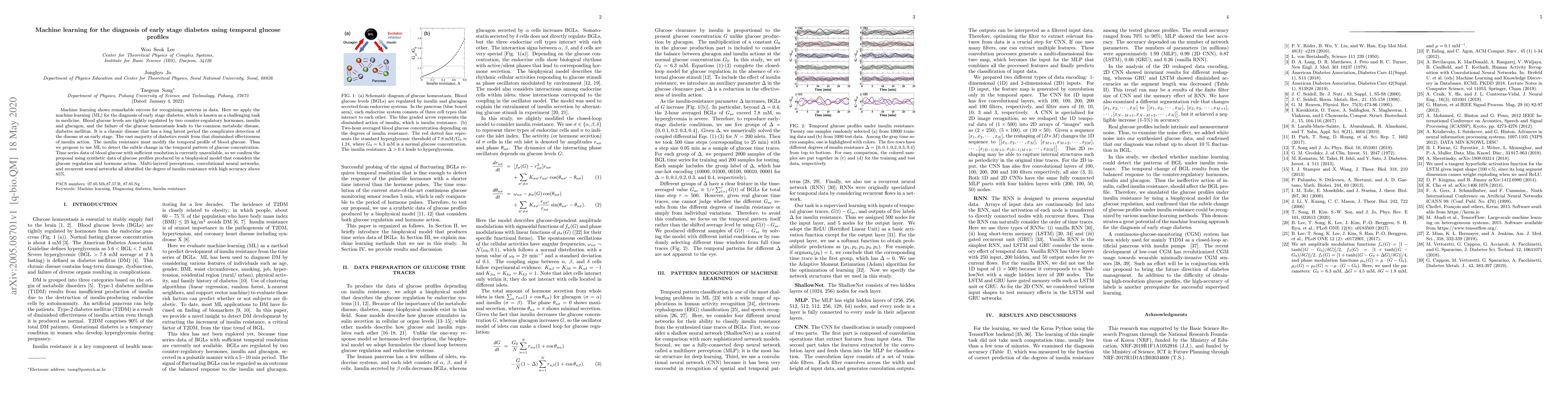 This paper applies machine learning techniques to diagnose early-stage diabetes by detecting subtle changes in temporal glucose profiles. Using synthetic data from a biophysical model, multi-layered perceptrons, convolutional neural networks, and recurrent neural networks achieved over 85% accuracy in identifying insulin resistance.