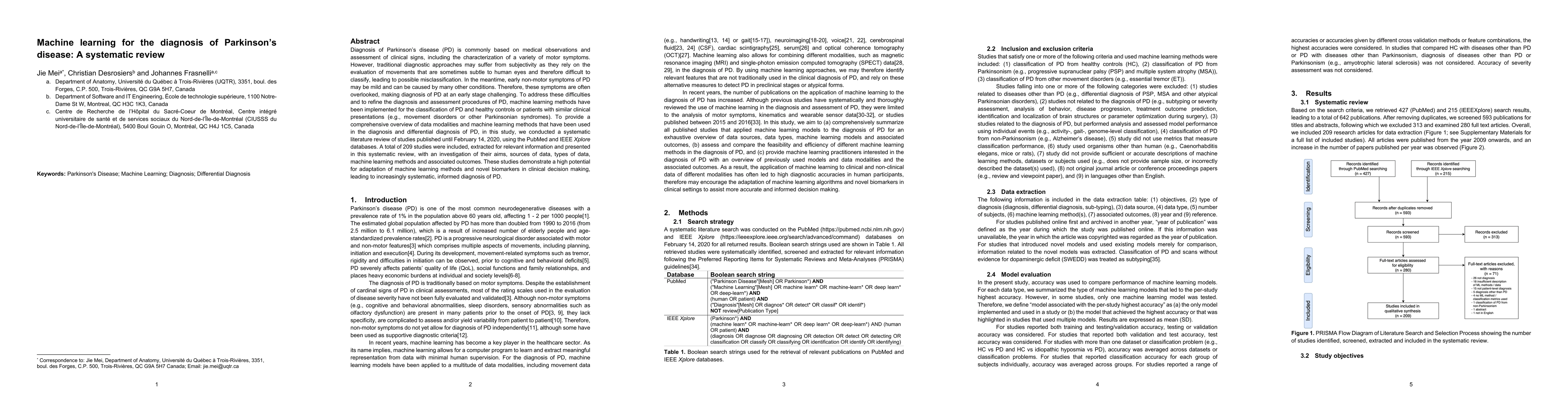 The systematic review highlights the potential of machine learning for improving PD diagnosis and provides insights into the most effective approaches, which may lead to improved patient outcomes.
