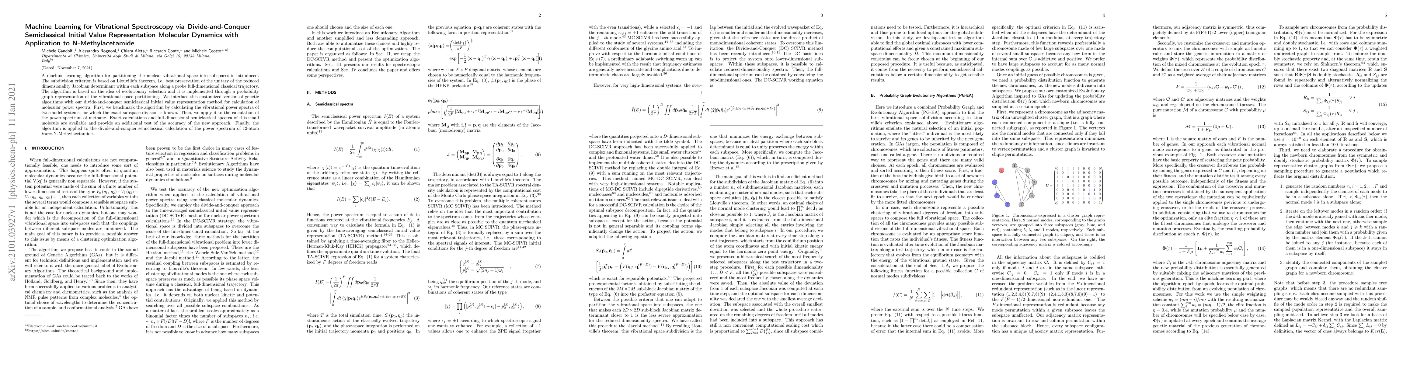 A machine learning algorithm for partitioning the nuclear vibrational space into subspaces is introduced. The subdivision criterion is based on Liouville's theorem, i.e. best preservation of the unitary of the reduced dimensionality Jacobian determinant within each subspace along a probe full-dimensional classical trajectory. The algorithm is based on the idea of evolutionary selection and it is implemented through a probability graph representation of the vibrational space partitioning. We interface this customized version of genetic algorithms with our divide-and-conquer semiclassical initial value representation method for calculation of molecular power spectra. First, we benchmark the algorithm by calculating the vibrational power spectra of two model systems, for which the exact subspace division is known. Then, we apply it to the calculation of the power spectrum of methane. Exact calculations and full-dimensional semiclassical spectra of this small molecule are available and provide an additional test of the accuracy of the new approach. Finally, the algorithm is applied to the divide-and-conquer semiclassical calculation of the power spectrum of 12-atom trans-N-Methylacetamide.